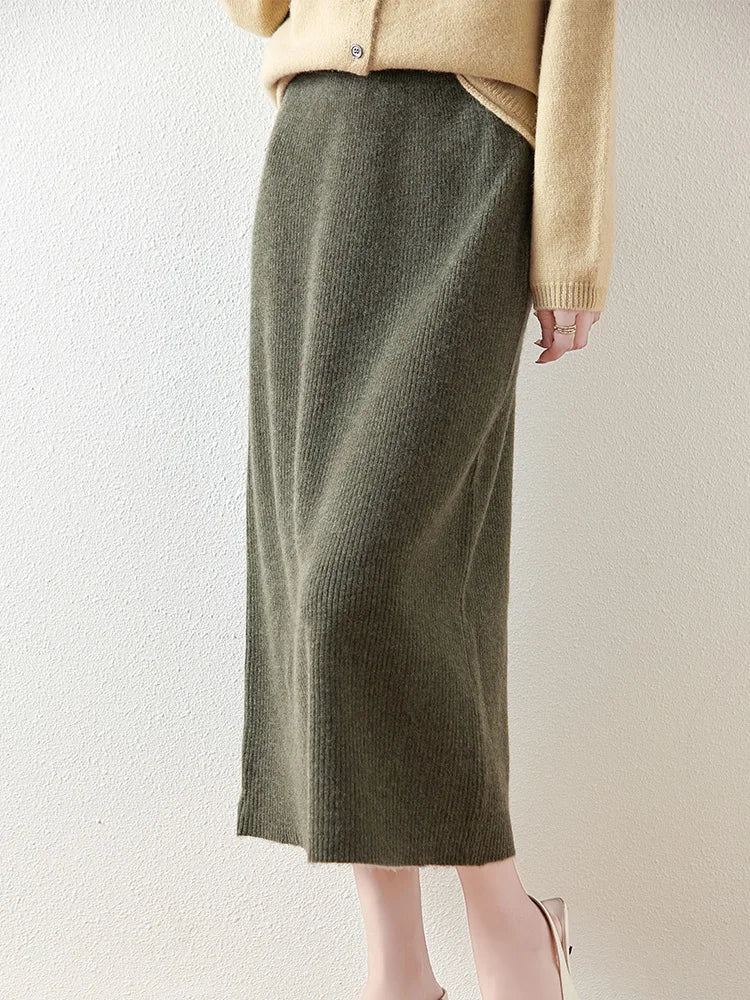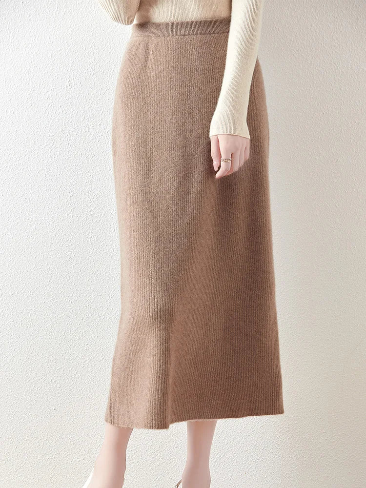 100% Merino Wool Knitted Half Skirt Autumn Winter Women's Elegant A-line Skirt High Waisted Mid Length Slimming Thick Warm Dress