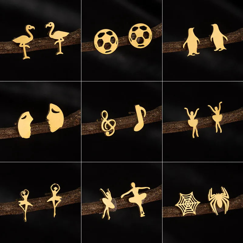 100% Stainless Steel Women Earrings Multiple Style Flamingo Moon Music Ballet Soccer Ear Cartilage Stud Piercing Jewelry Gift
