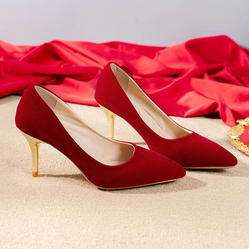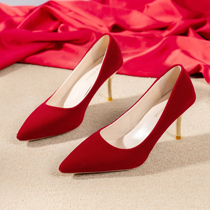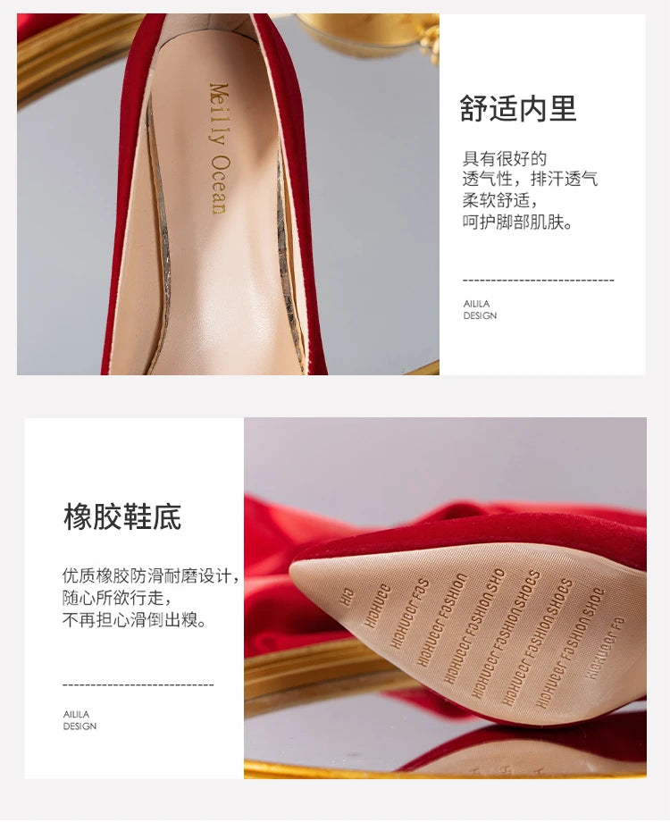 12cm Red Heels Oversized Women's Heel Shoes 45 Red Wedding Shoes Flannelette Super High Heel Women's Shoes Zapatos De Mujer