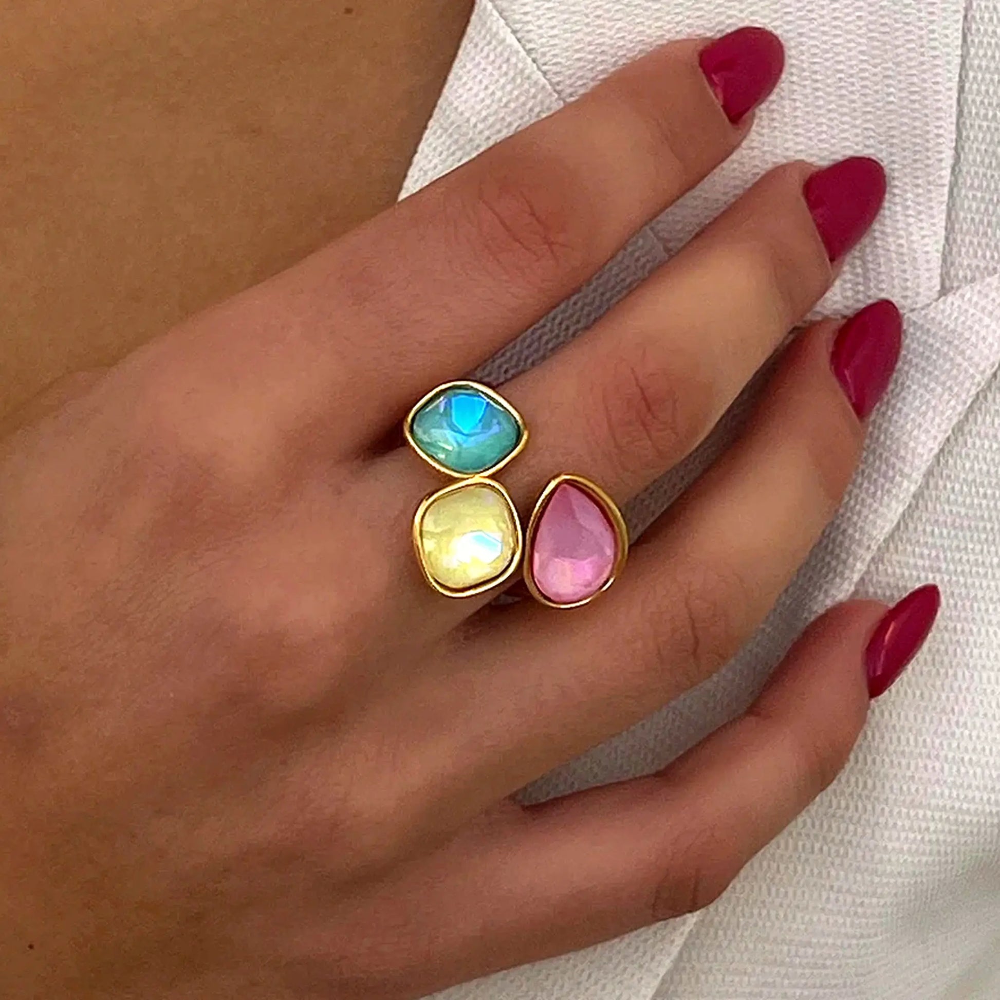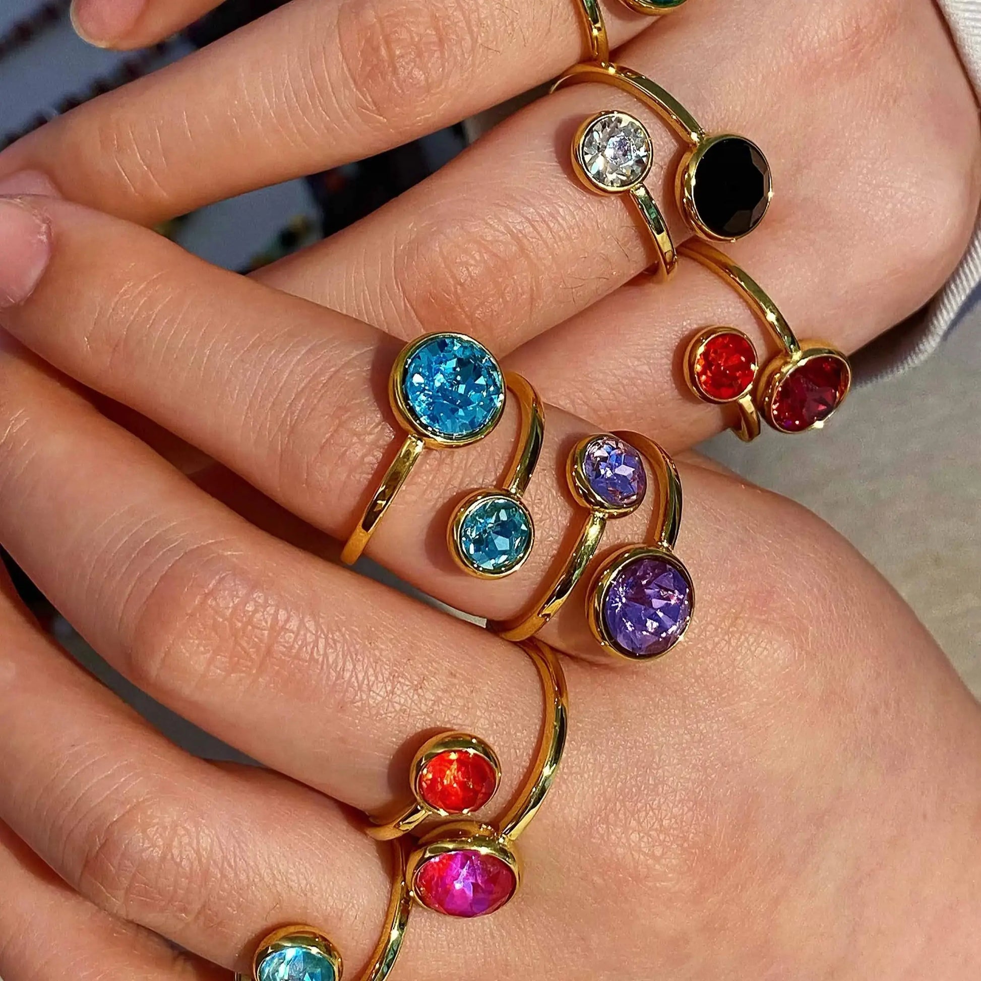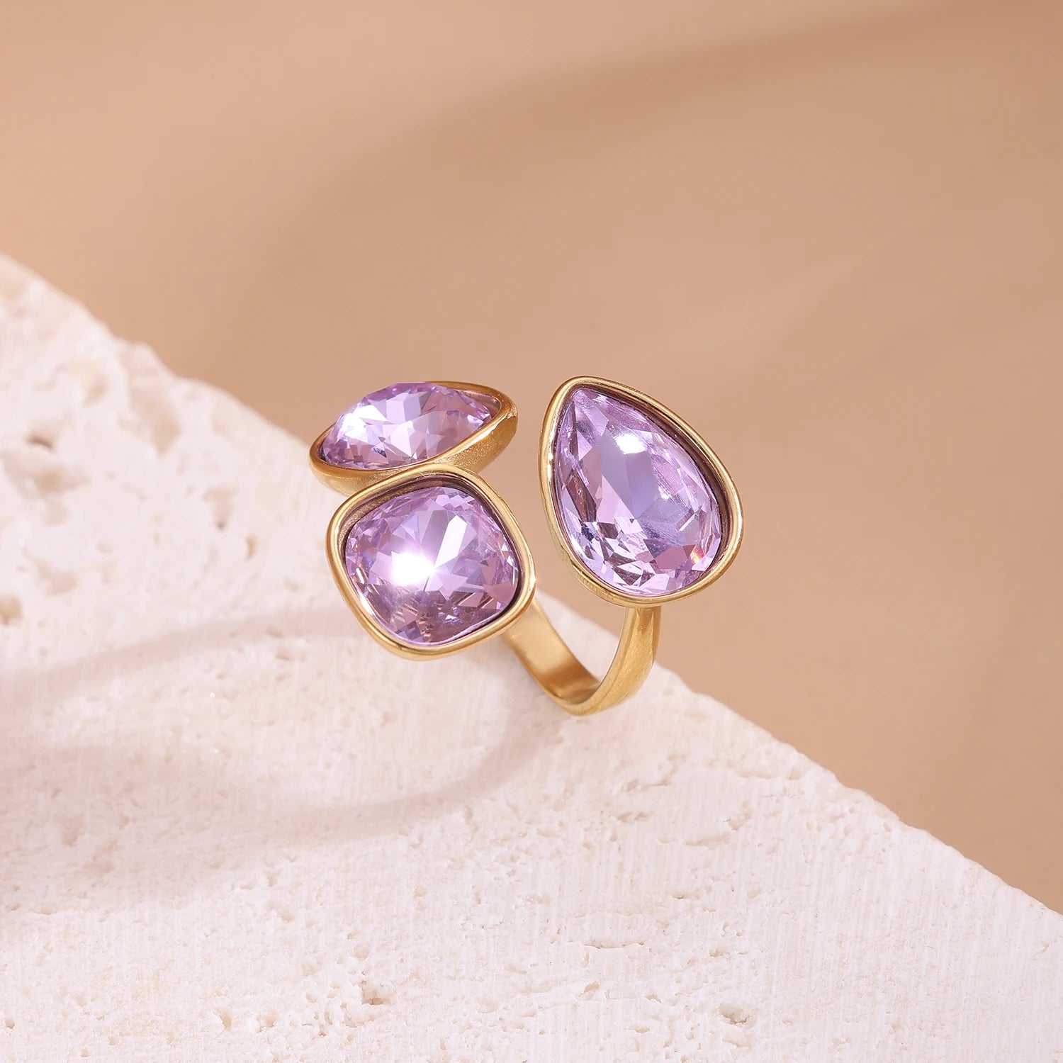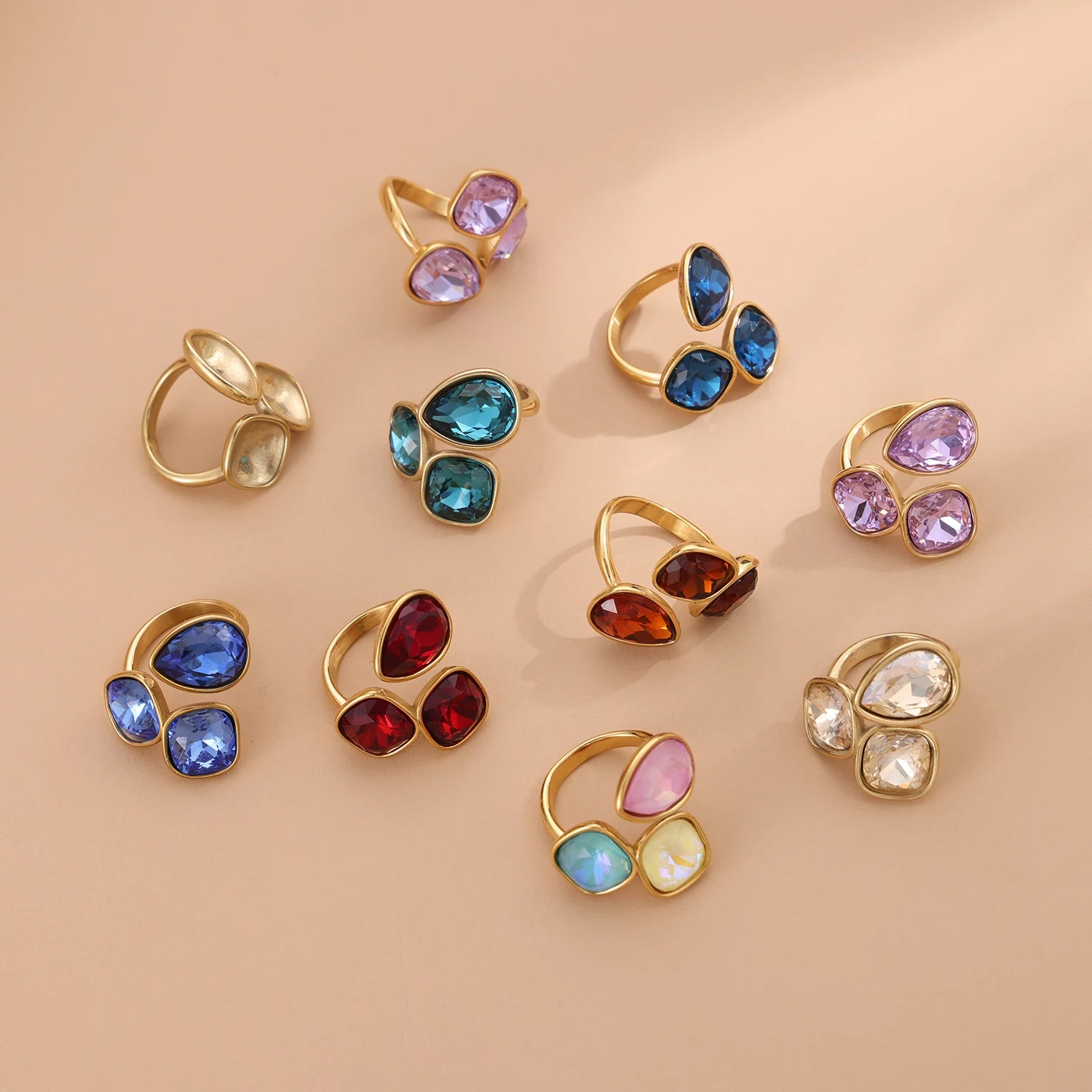 18k gold color stainless steel ring with crystal ring for women light luxury high-grade color open stainless steel