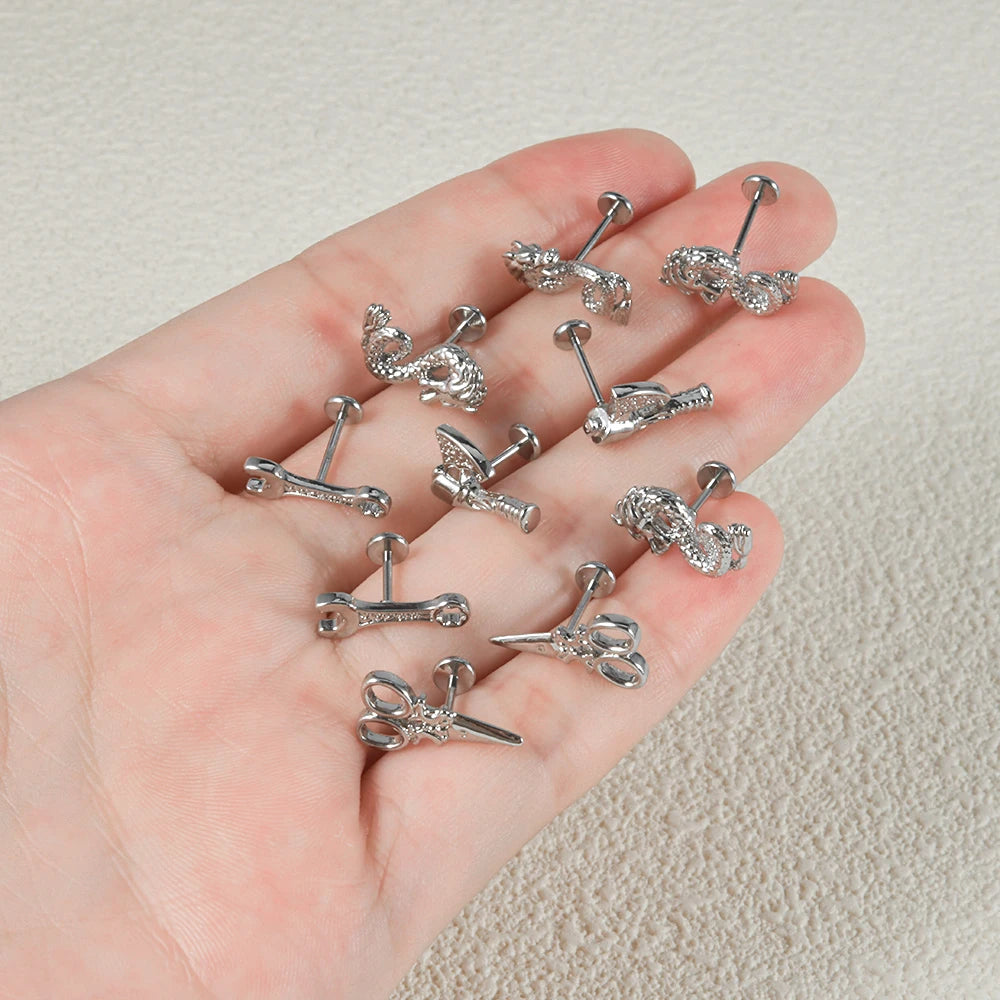 1PC Surgical Steel Threadless Wrench Axe Scissor Dragon Labret Lip Ring Ear Cartilage Tragus Earring Helix Lobe Piercing Jewelry