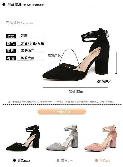 2025 Summer Square High Heels Women Shoes Flock Pointed Sandals Sexy Female Sandalias Shoes Ankle Buckle 6cm Heel Casual Pumps