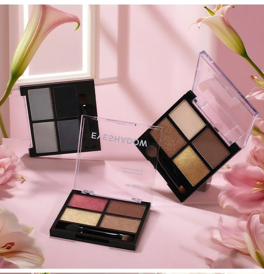 4-Color Smoky Gray Eye Shadow Palette Pearly Matte Earth Color Eyeshadow Pallete Shiny Sequins Eye Pigments Lasting Makeup