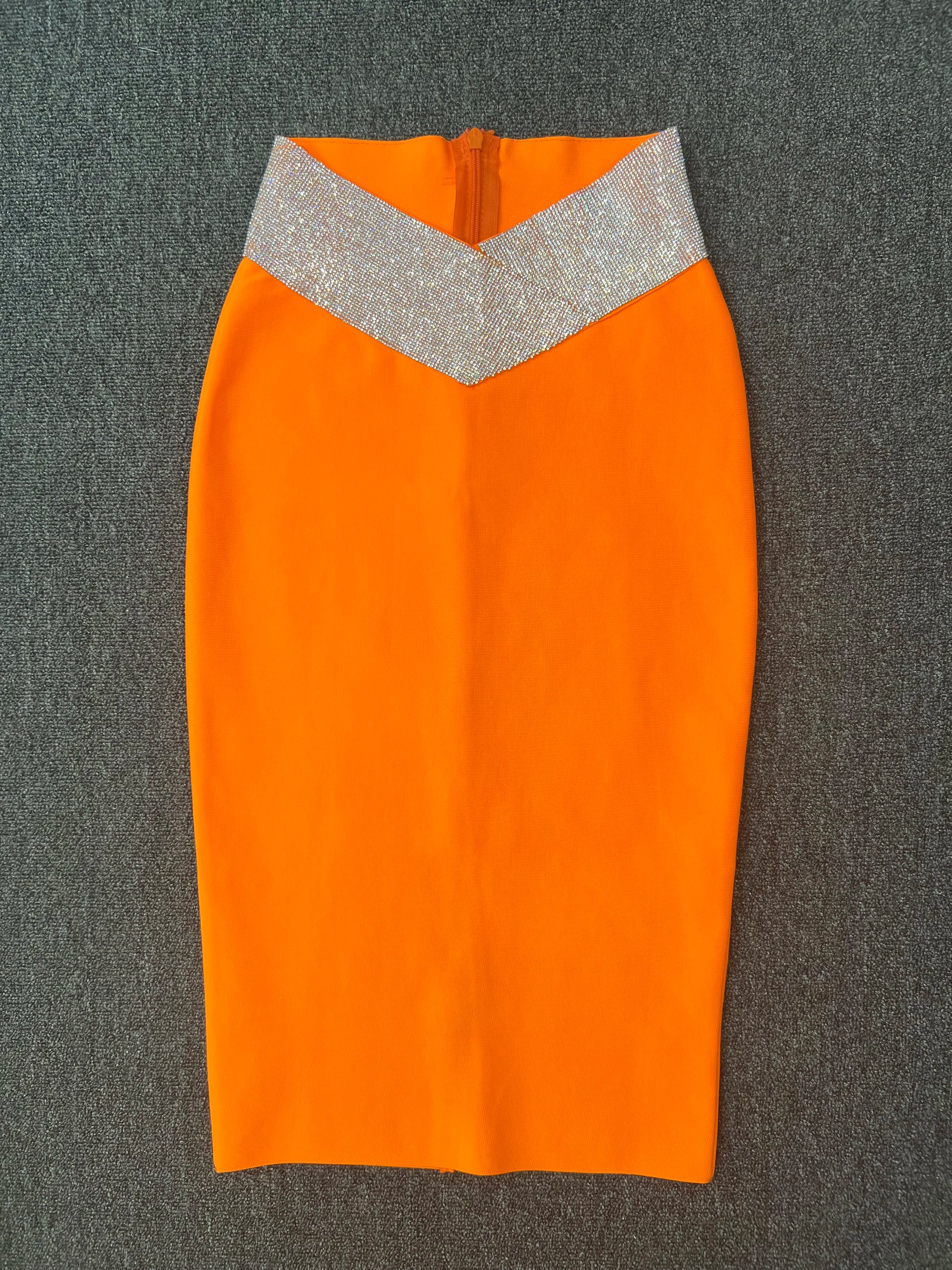 5 Colors Long Bandage Skirts Womens 2022 Luxury Diamonds Beading Waist Knee Length Elegant Formal Party Pencil Skirt Winter Wear