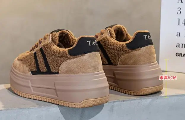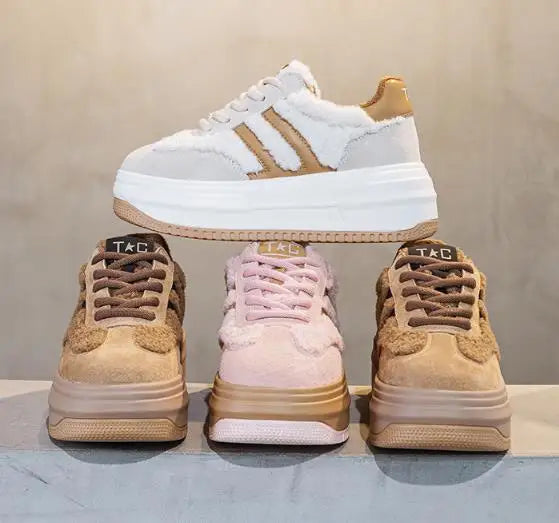 6CM Pink Natural Genuine Leather Fashion Breathable Casual Women's Shoes Platform Warm Plush Winter Autumn Comfy Ankle Booties