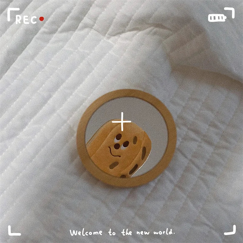 7.2*7.2cm Pure Wood Makeup Mirror Functional Wood Stylish Girls' Round Mirror Versatile Portable Mirror for Beauty Tool