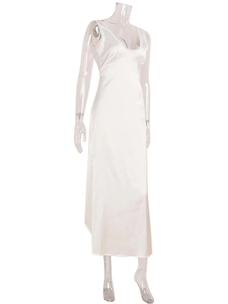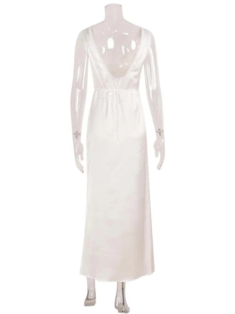 Ahagaga Eelgant Women Dresses Solid Satin Deep V-Neck Lace Up Patchwork Sweet Regular Causal Sheath Party Female Vestidos Robes