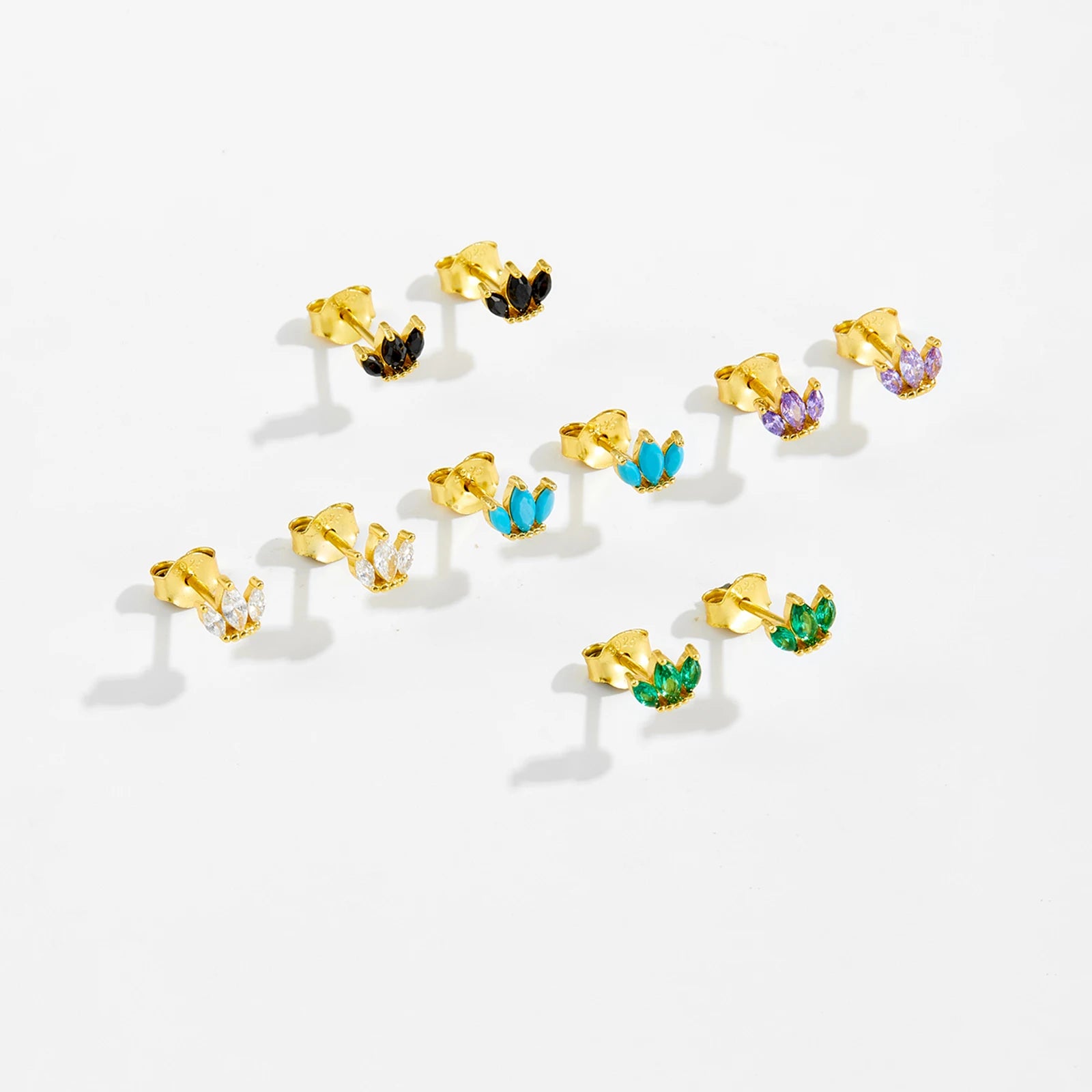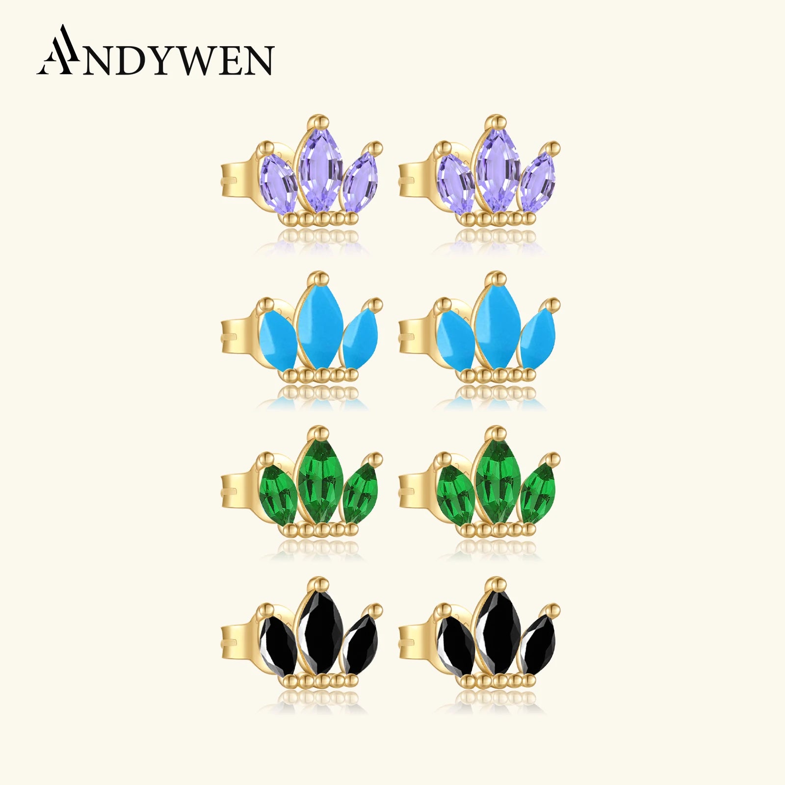 ANDYWEN 925 Sterling Silver Colorful Three Ovals Queen Stud Earring Luxury Fashion Zircon Piercing Three Leafs Small Jewelry
