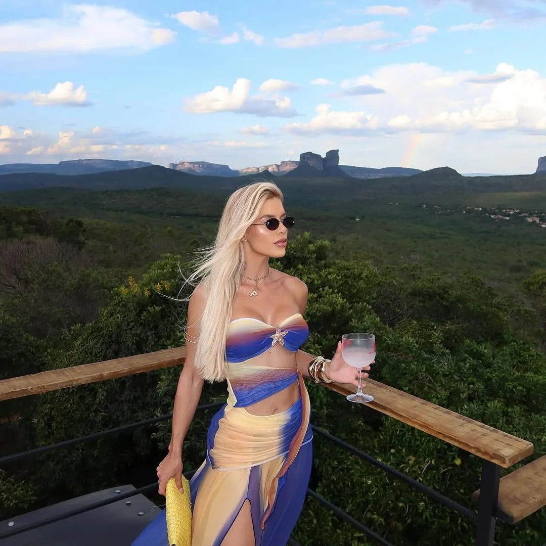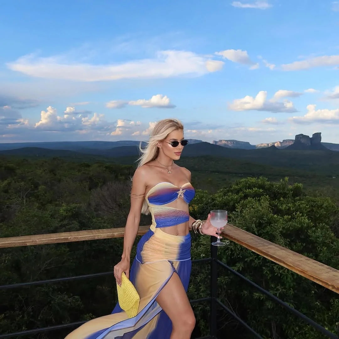 Bandage Swimwear with Skirt Slit Skirt Gradient Swimsuit Long Skirt Suit Swimsuits Women Bathing Suits Summer Beachwear Biquini