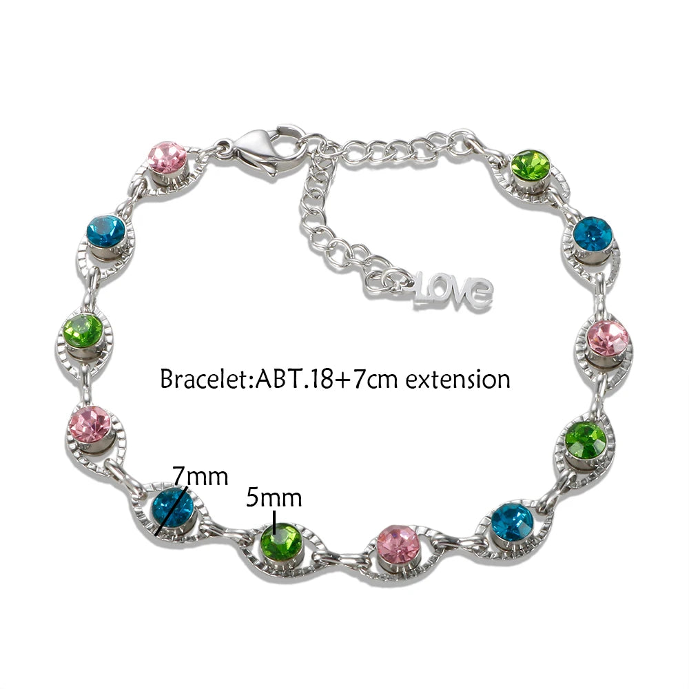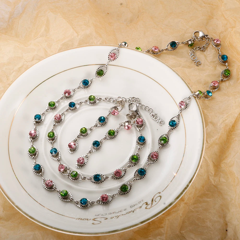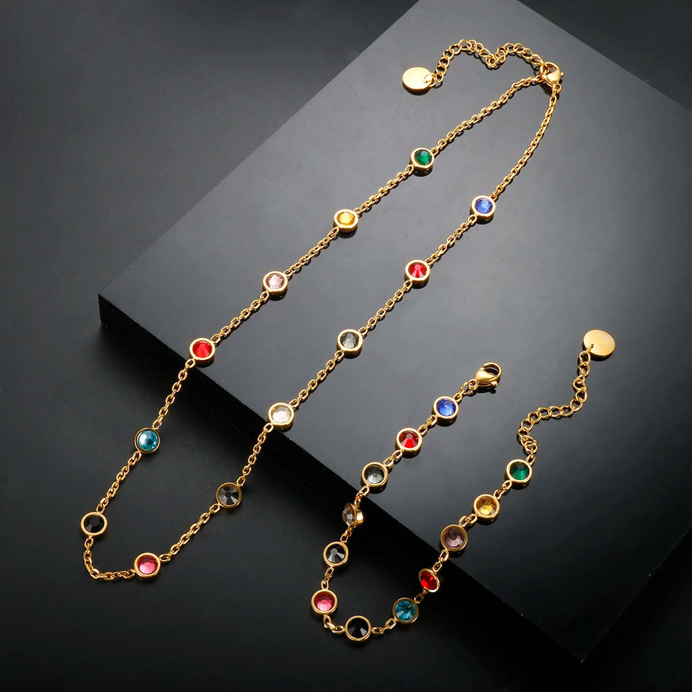 Bejeweled Bracelet Necklace 12 Birthstones Colorful Crystal Jewelry Set Stainless Steel for Women Luxury Fashion T S Bracelets
