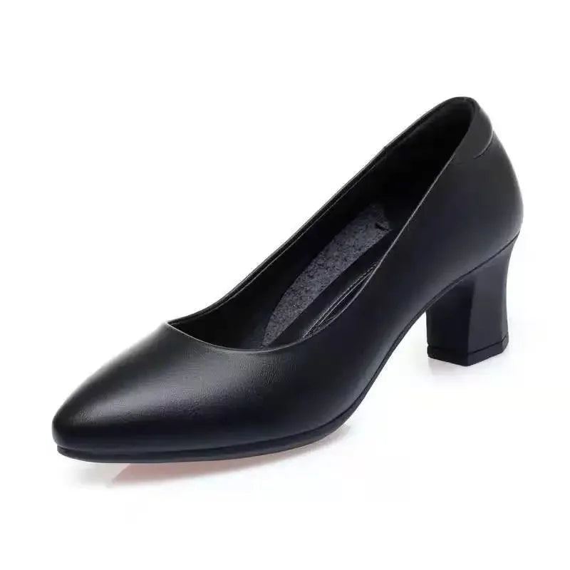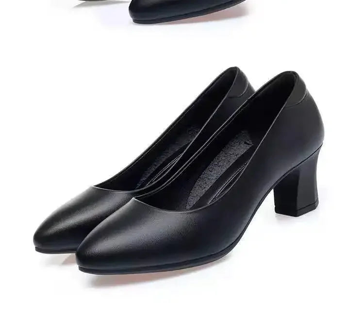 Black Interview Shoes for Women Hotel Work High Heel Soft Bottom Leather Single Shoes Summer Season Adult Footwear