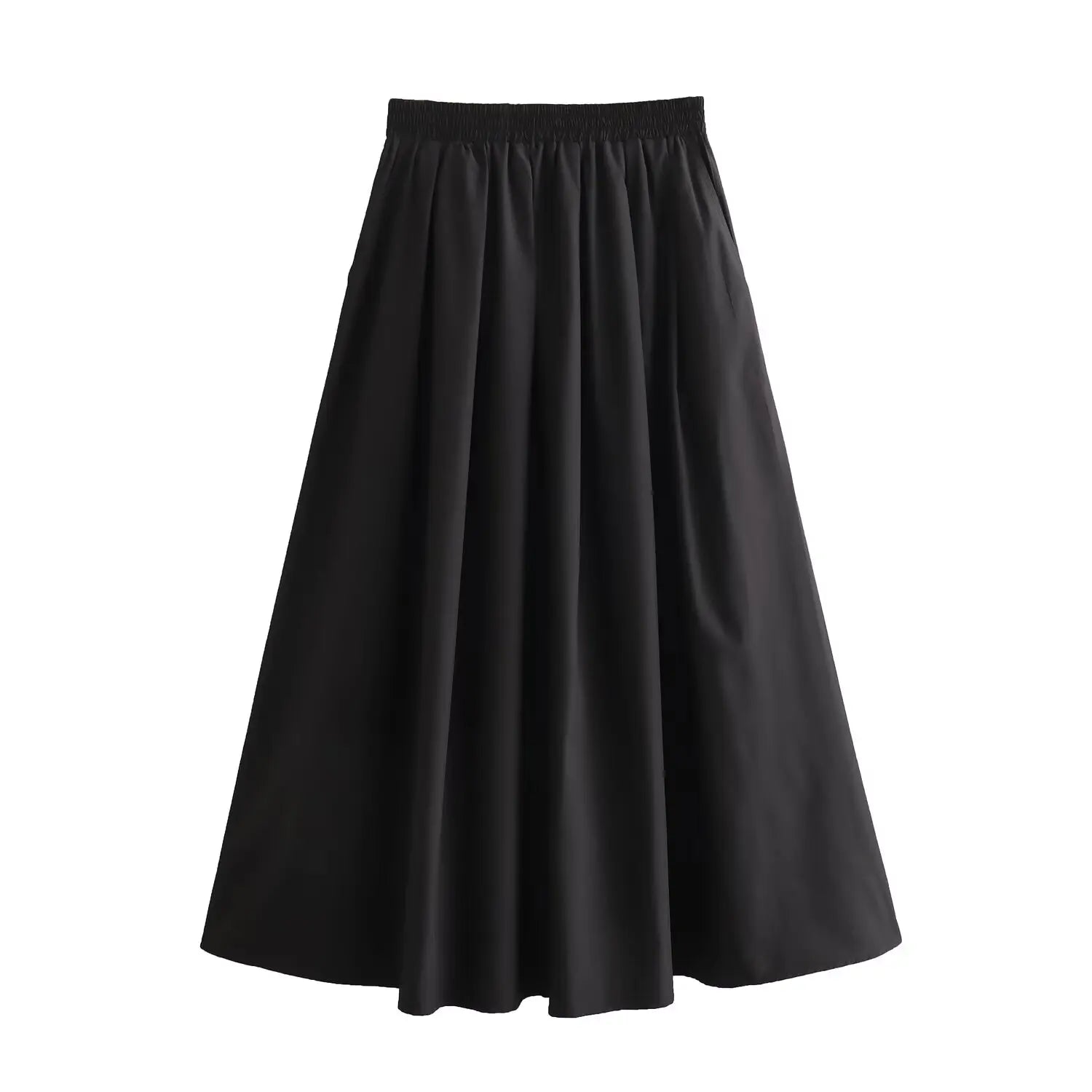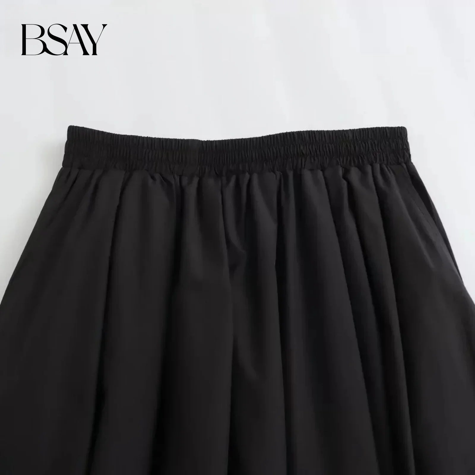 BSAY Women's Fashion Spring New Black Wide Pleated Swing Vintage Chic Female High Waist Elegant A-line Long Skirt Mujer