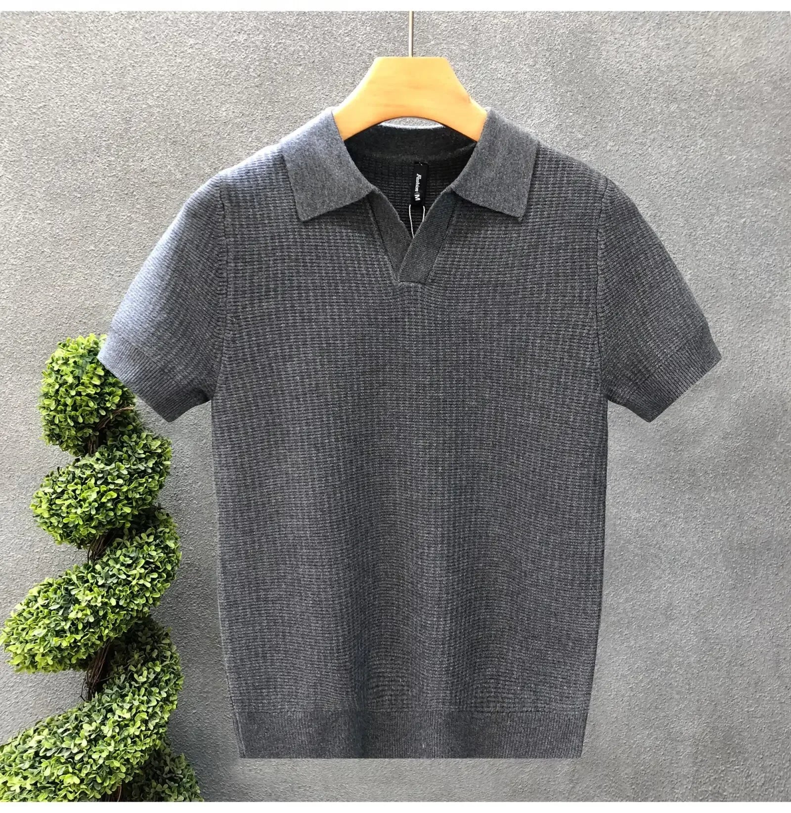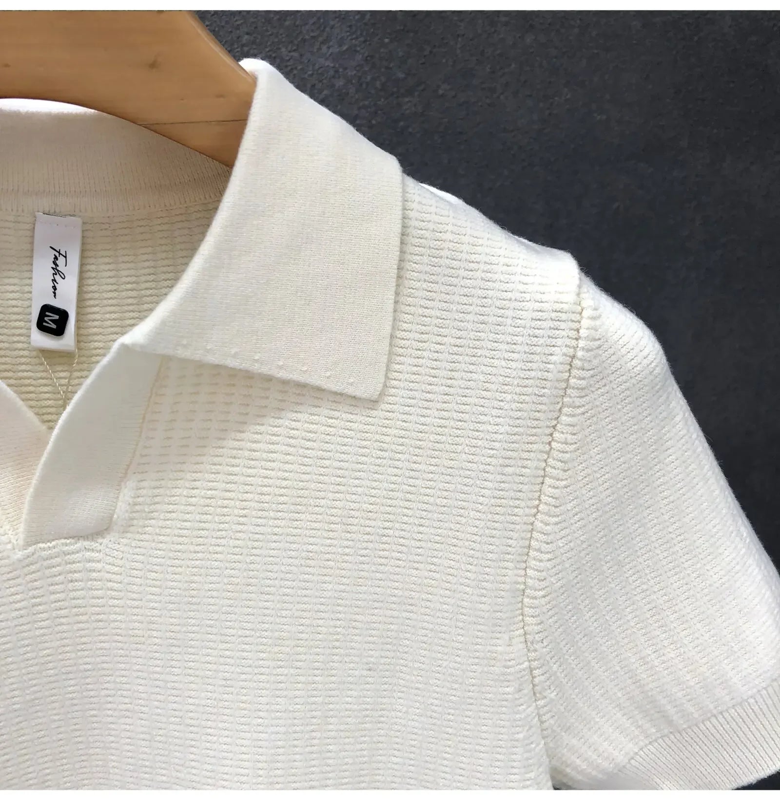 Casual Knitted Polo Shirt Men's Short Sleeve Cuban Collar T-Shirt Summer Fashion Individualistic Turn-down Collar Male Top