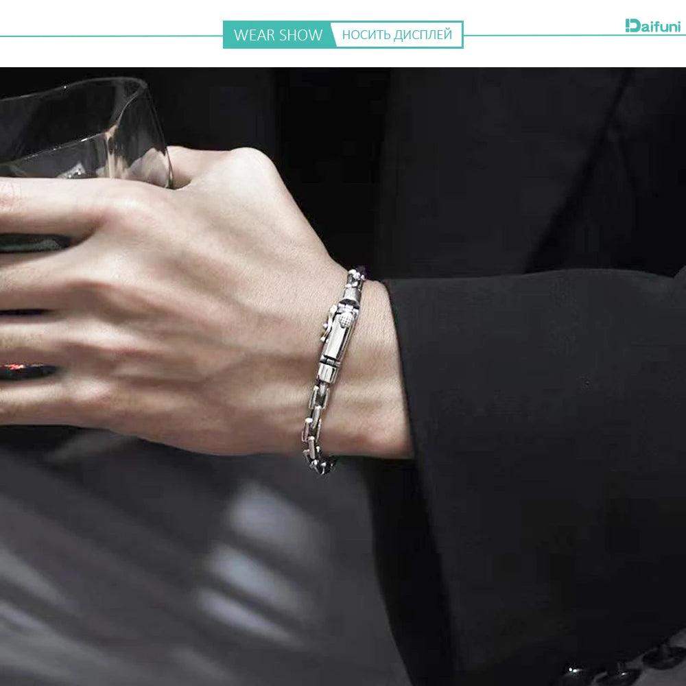 Daifuni 100% 925 Sterling Silver 5/6/8MM Chain & Link Bracelets For Men Vintage Steampunk Biker Hip Hop Style Party Jewelry Gift