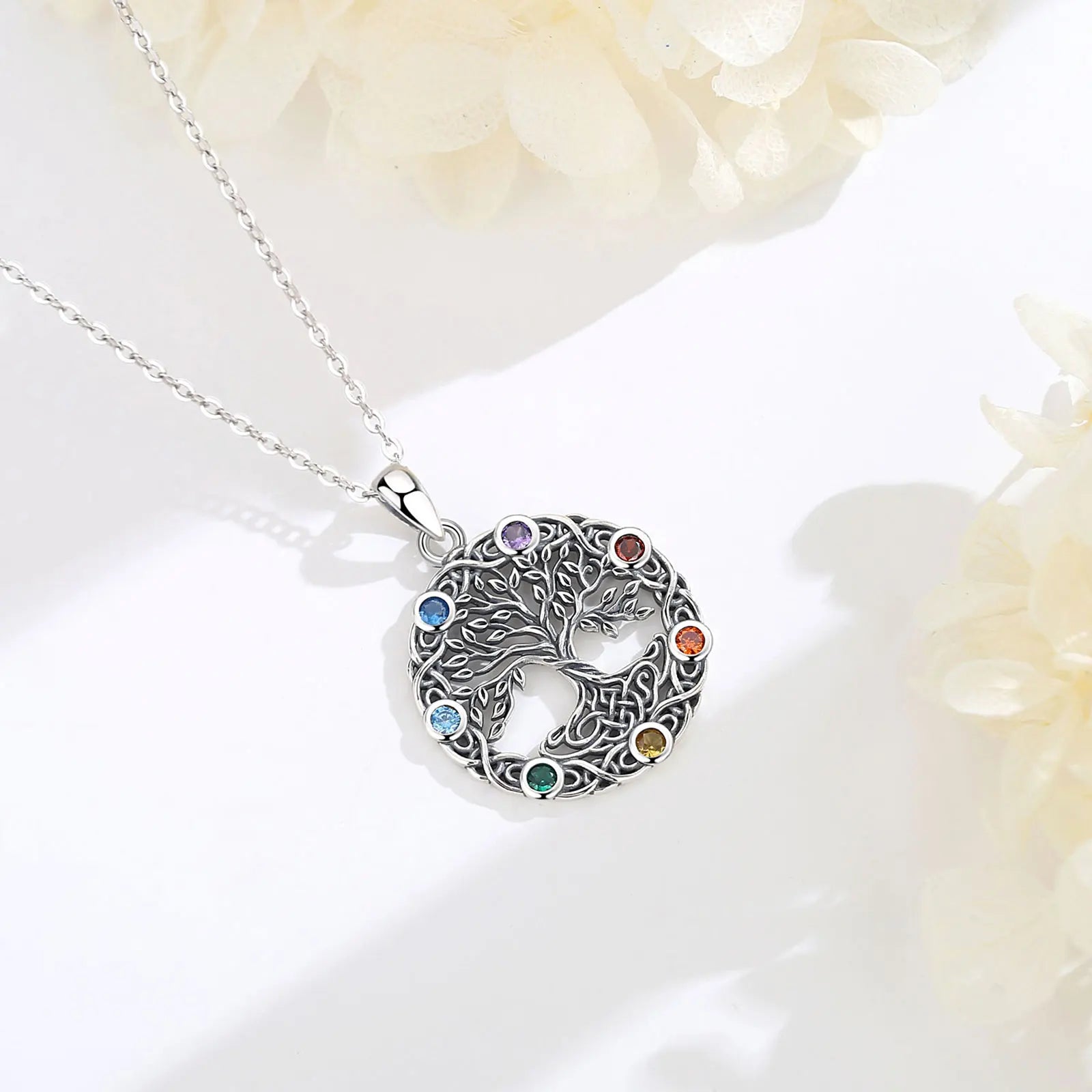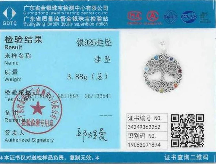 Eudora Original 925 Sterling Silver Tree of Life Necklace for Women Man 7 Color Chakra Pendant Tree Jewelry Mom Grandma Gifts