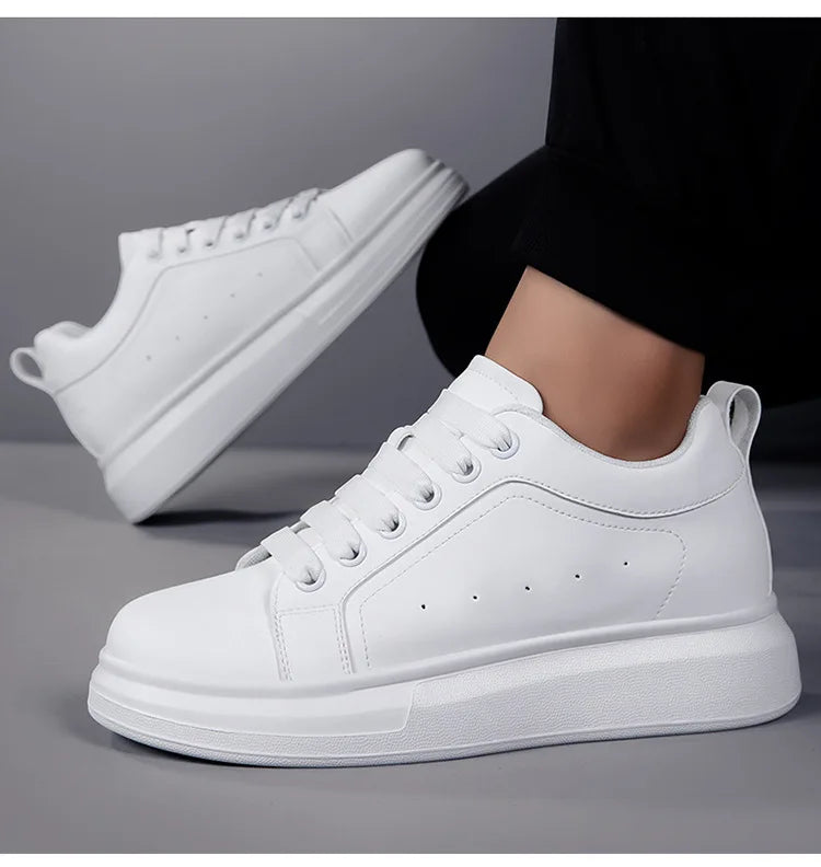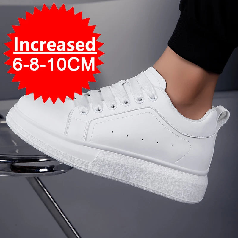 Fashion PU Leather Elevator Shoes for Men 6cm 8cm 10cm Invisible Height Increase White Sneakers Cortex Heightening Casual Shoes