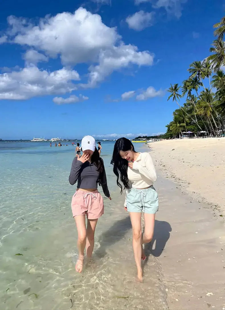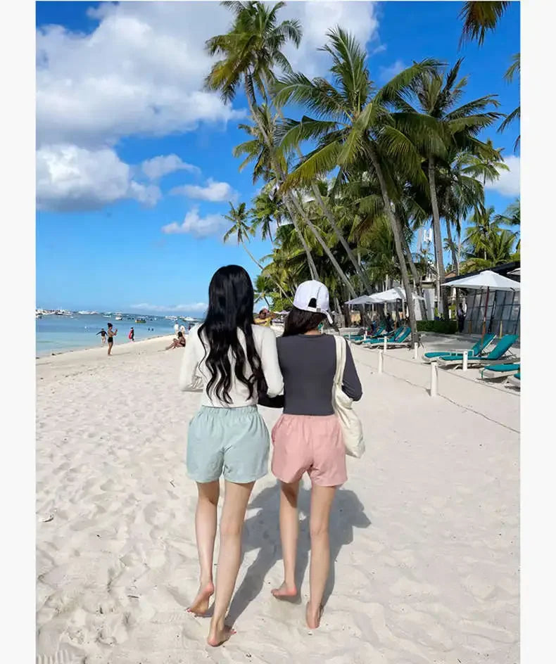 Fashionable Korean Dongdaemun Long Sleeve Women's Swimsuit Casual Beach Vacation Two Piece Conservative Student Bikini Set