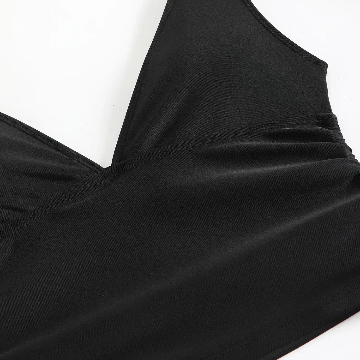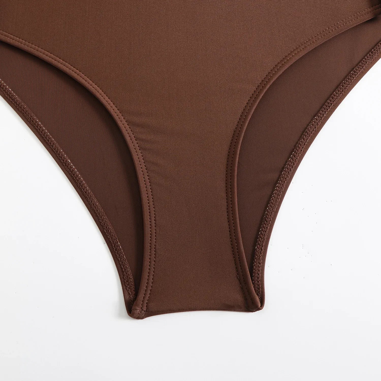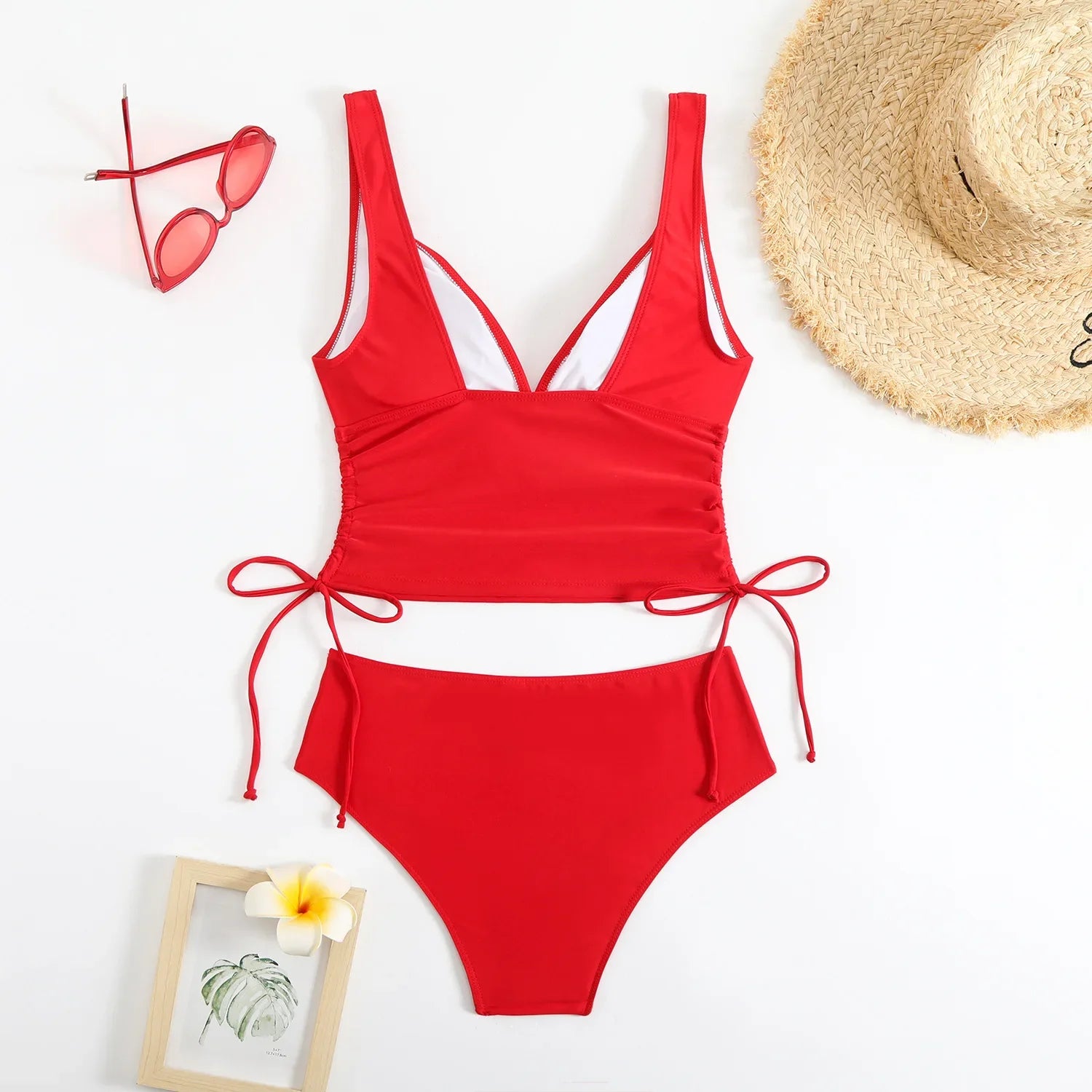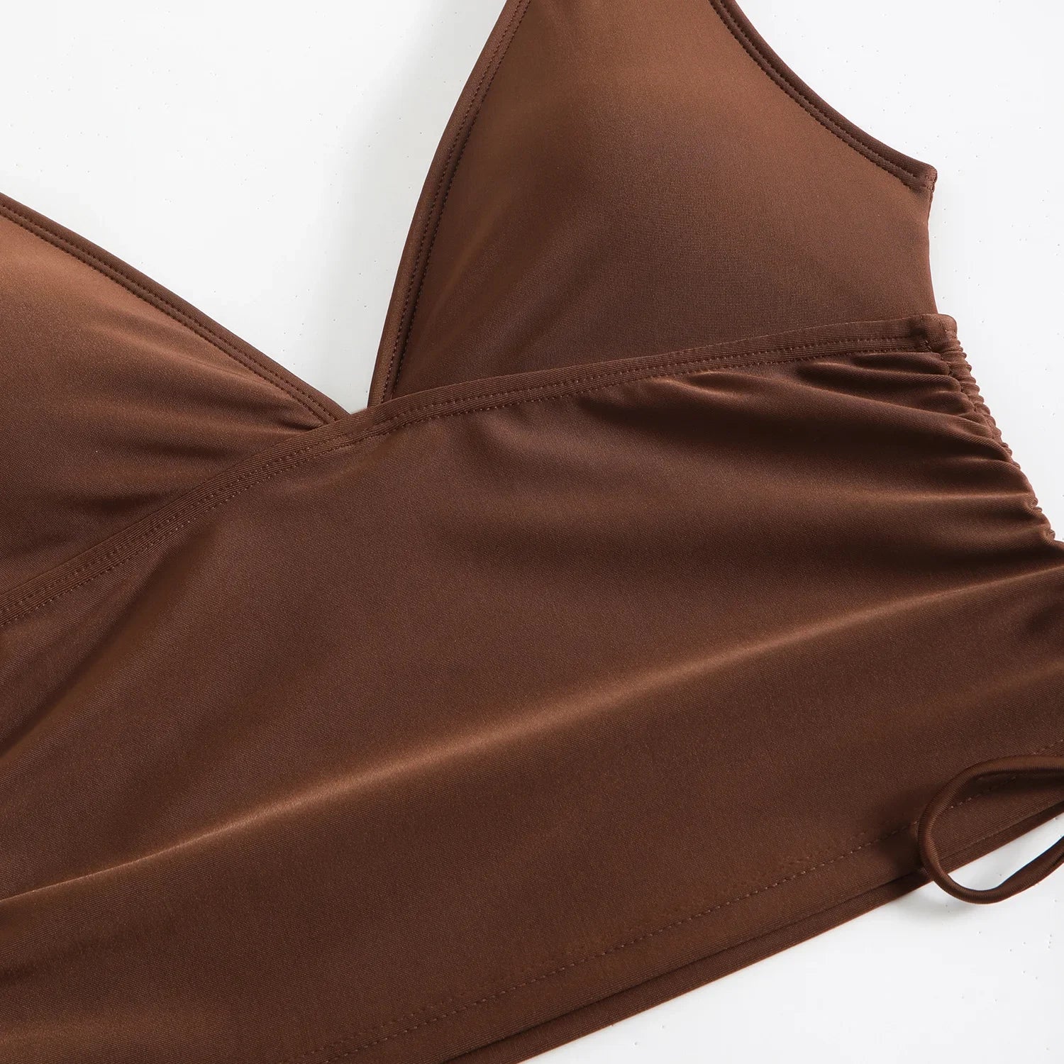 Fashionable Pure Color Nylon Fabric Bikini Set Sexy Two-Piece Swimsuit Drawstring Design Separate Top And Bottom for Women