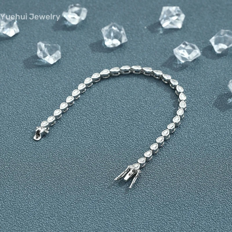Gold Plated Bracelet Women 925 Cuban Link Pear Moissanite Bracelet Making Women's