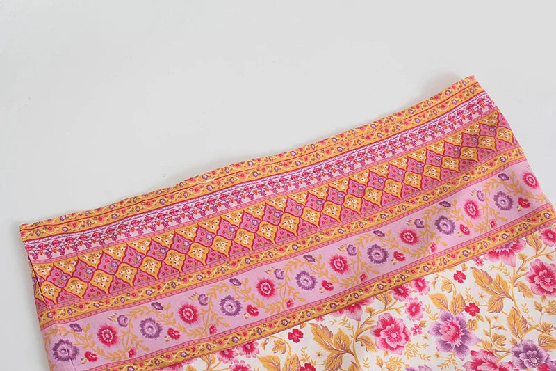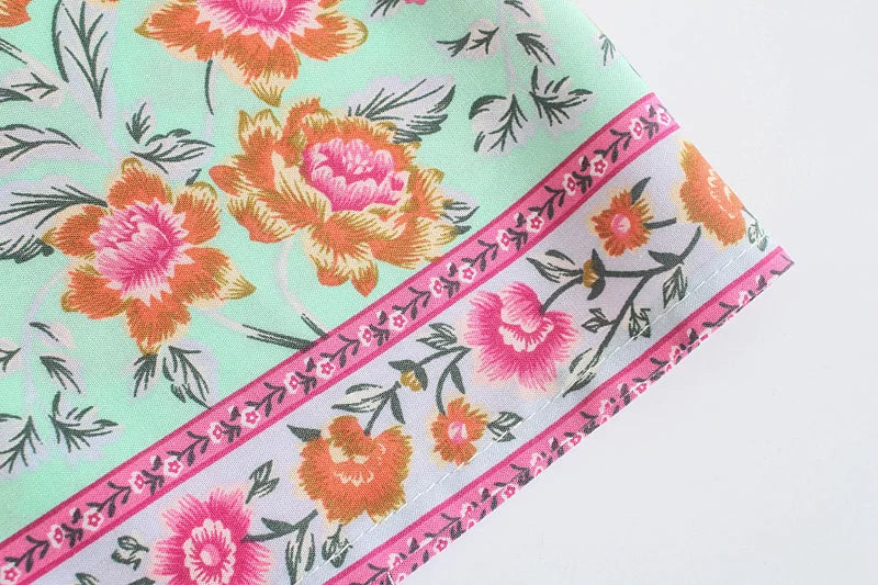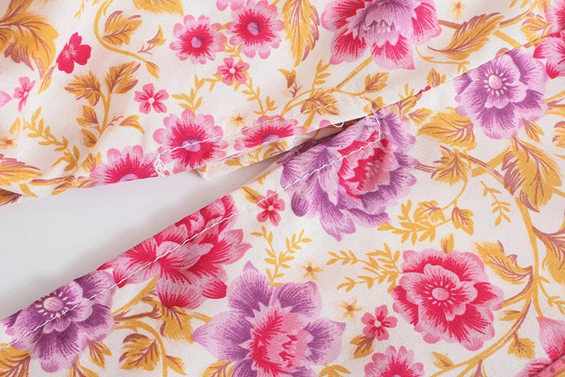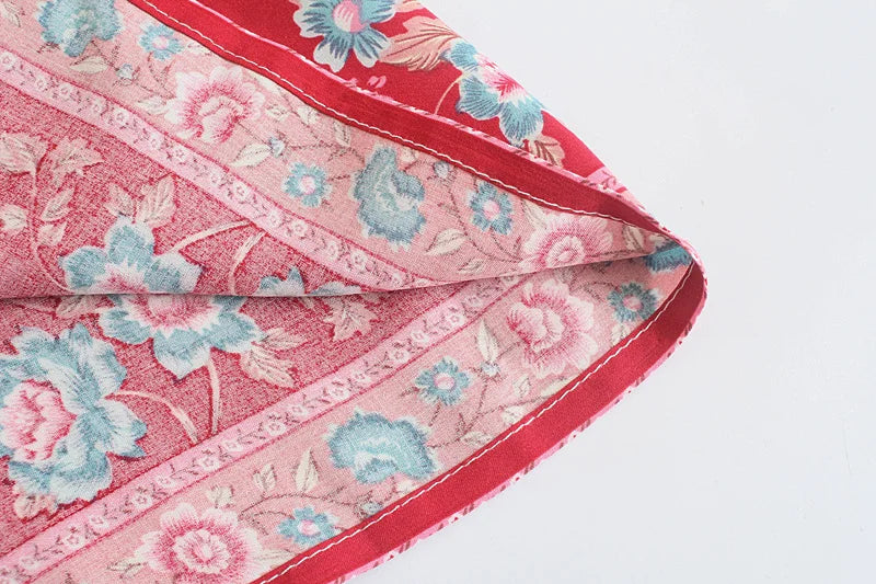 Happie Queens Vintage Floral Print Sashes Women Bohemian V Neck Batwing Sleeves Happie Blouses Robe Kimono Cover-ups