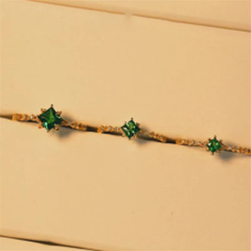 HI MAN 925 Sterling Silver French Romantic Solid Geometry Green Zircon Ring Women Vintage Temperament Engagement Gift Jewelry