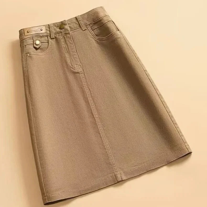 High Waist Denim Skirt Women's Spring Summer New Style Slimming Fashionable Versatile Small Size Draped Midi Skirt