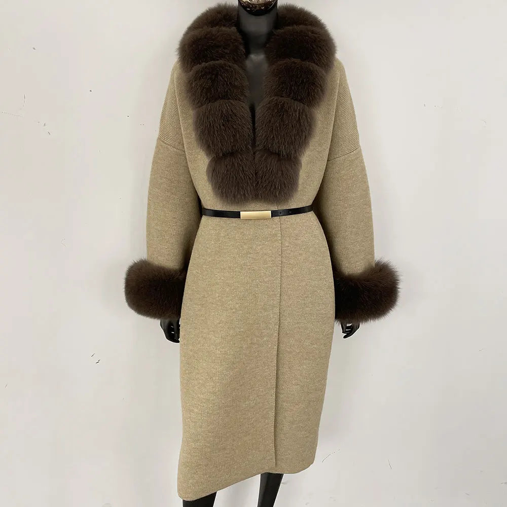 Long Knitwear Coat Women Warm Belt Real Fox Fur Jacket Female 2024 New Autumn Winter Kintted Natural Fur Coat Women