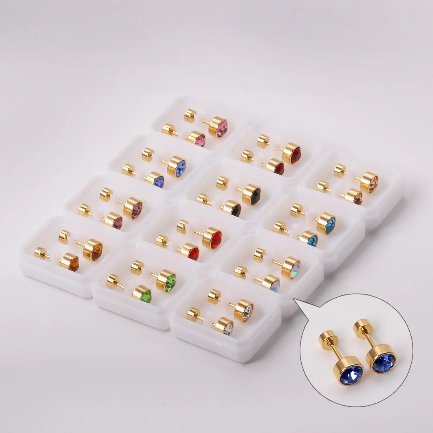 LUXUKISSKIDS 12pairs/Lots 3-6MM Rround Shape Stainless Steel Earrings Cubic Zirconia Screw Pack Colorful Studs For Girls Jewelry