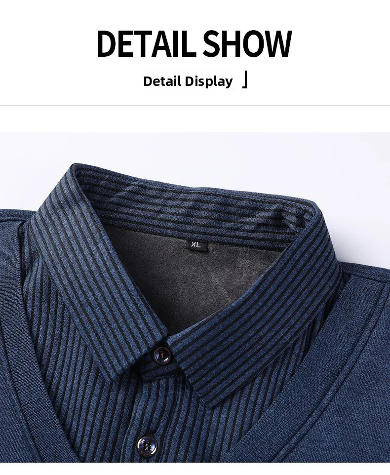 Men's Long Sve Fce Lined Knitted irt Busin Casual Sle Winter Warm Top Fake Two-Piece Design Comfortable Fit
