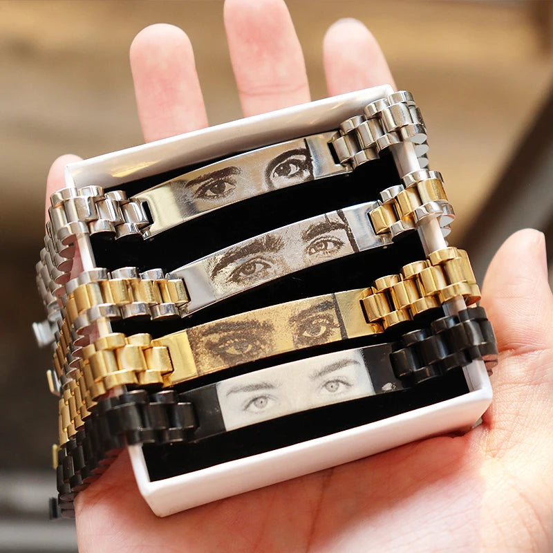 Personalized Customized Eyes Photo Stainless Steel Bracelets With Photo Laser Engraved Eyes Luxury Men's Bracelets Custom Gifts