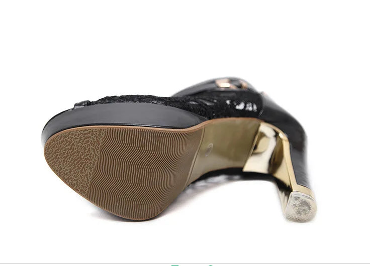 Sexy Mesh Fabric Platform High Heels Boots Sandals Women Peep Toe Nightclub Party Stiletto Female Shoes