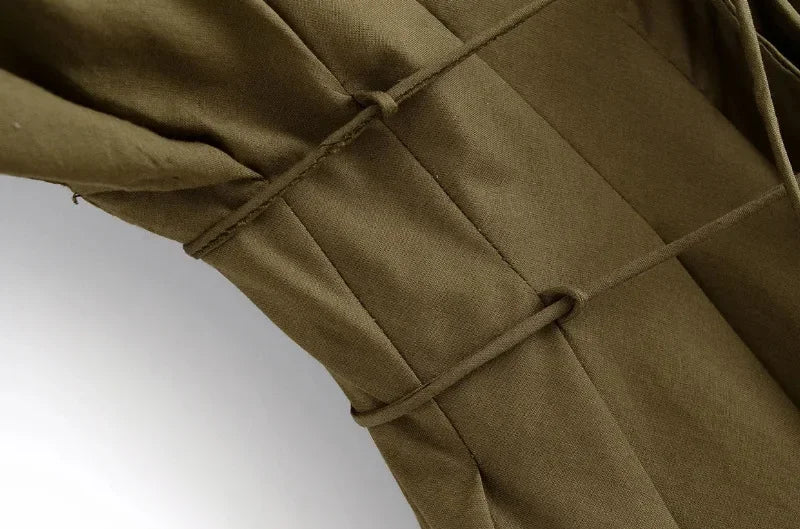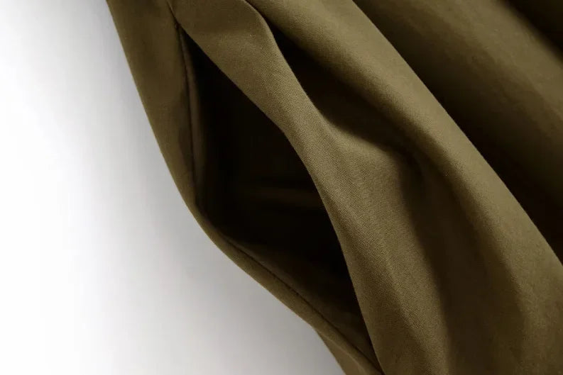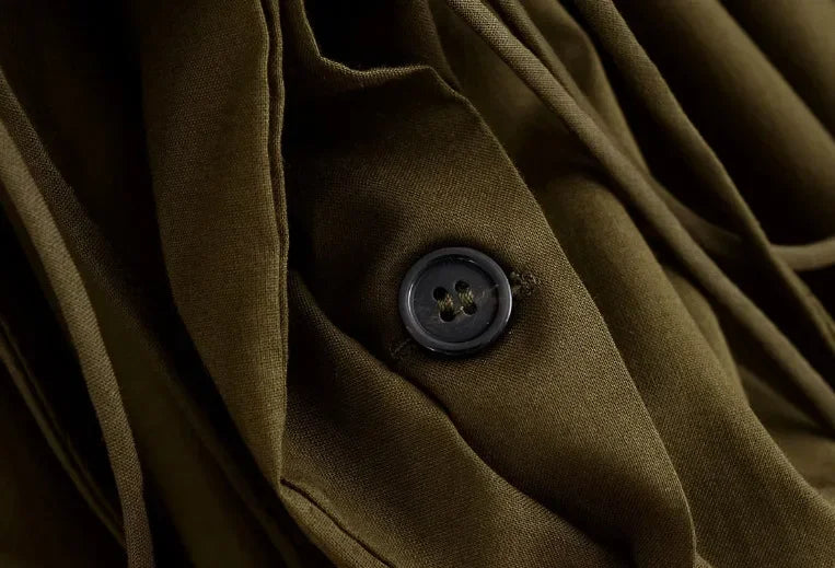 Slimming Casual Short Sleeve Pleated Shoulder Draped Dress Versatile Women's Fashion Design Knee-Length V-Neck Dress