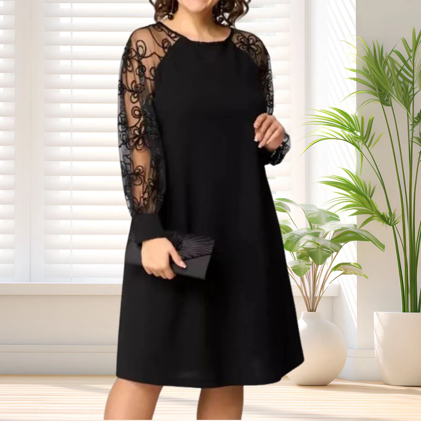Spring/Summer Elegant Dresses for Women 2025 Party Sheer Long Sleeve Floral Lace Mother of Bride Midi Dress Wedding