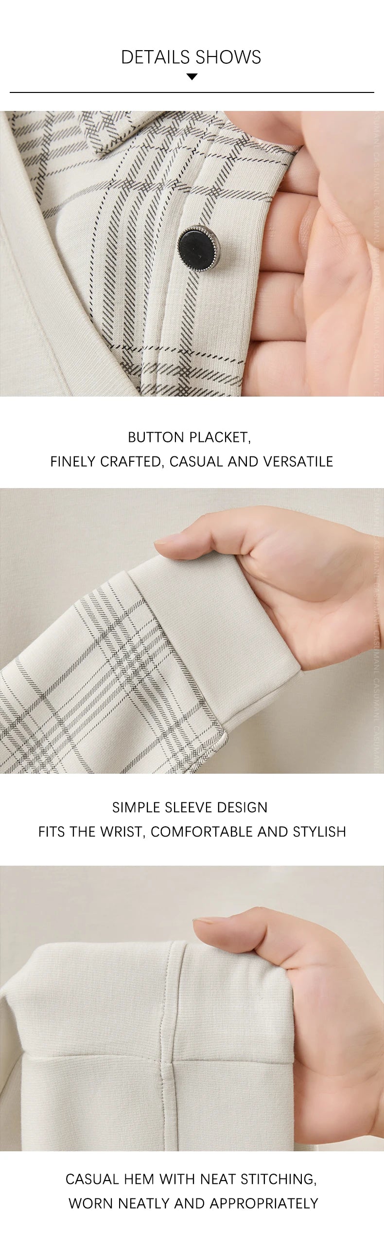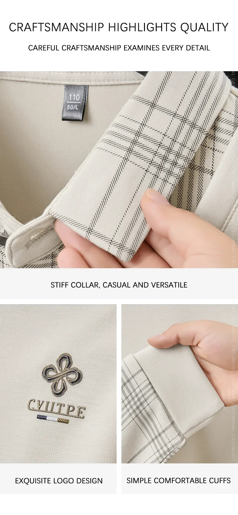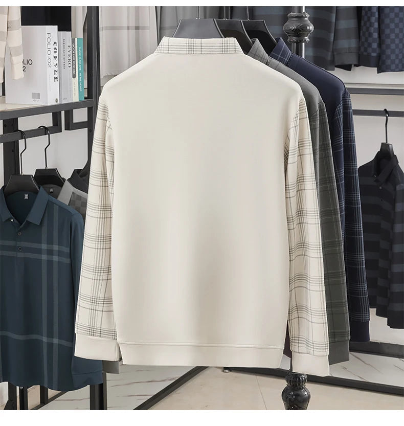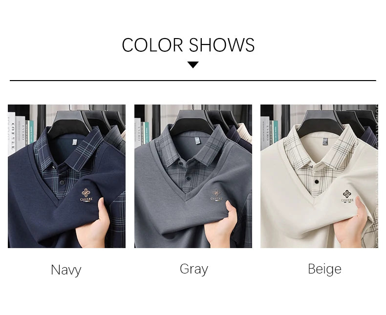 TFETTERS Long Sleeve Polo Shirt Men 2025 Autumn New Business Slim Fake Two Shirt Man Casual Loose Plaid Graphic Shirt for Men