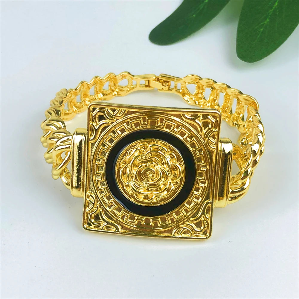 TITI Dubai Luxury Jewelry Set for Women 18K Gold Plated Necklace Bracelet Ring Earrings Classic Daily Wear Party Gift