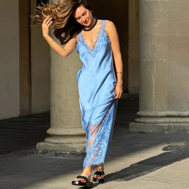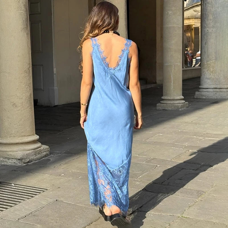 Tornova Sexy Spaghetti Strap Lace Dress For Women Fashion Splice Elegant Backless Long Dress Slim Vacation Party Female Clothes