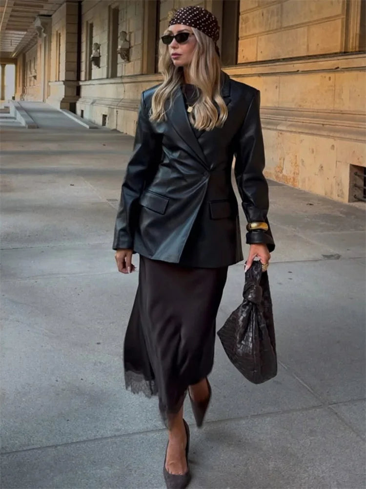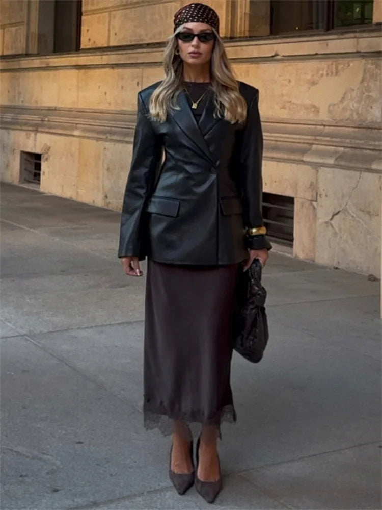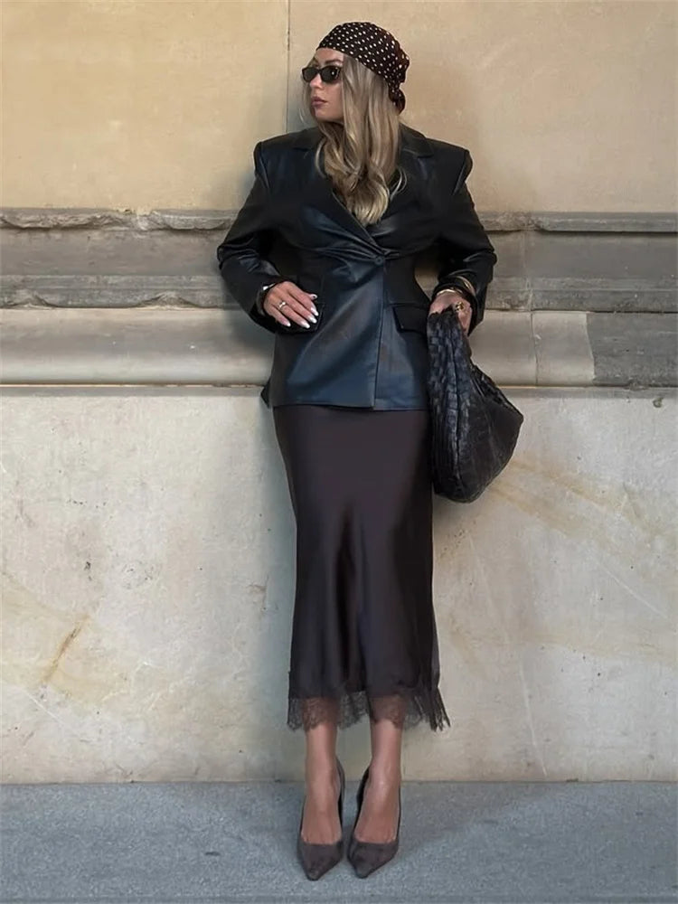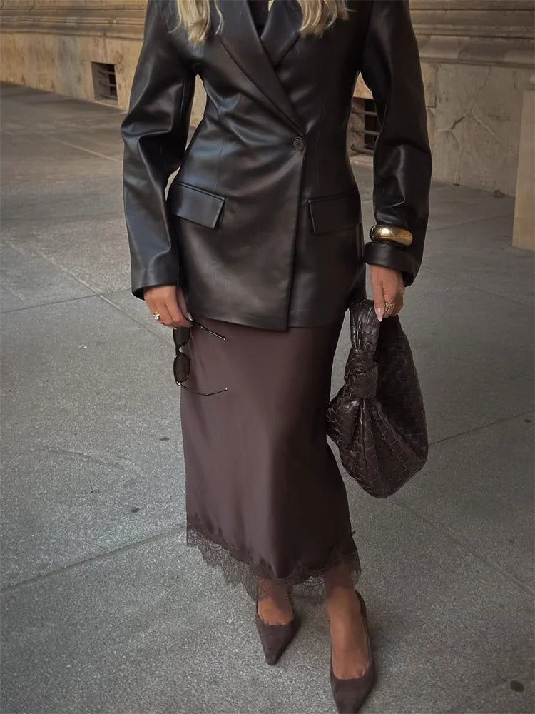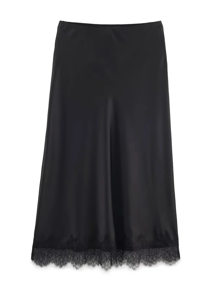 Tossy Fashion Autumn Lace Maxi Skirt For Women High Waist Slim Satin Elegant Commute Party Looks Female Printed Lace Long Skirt