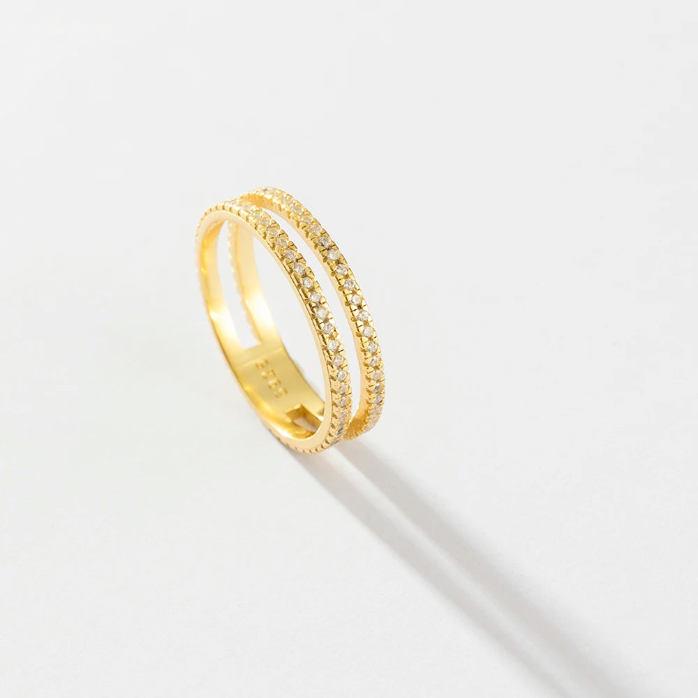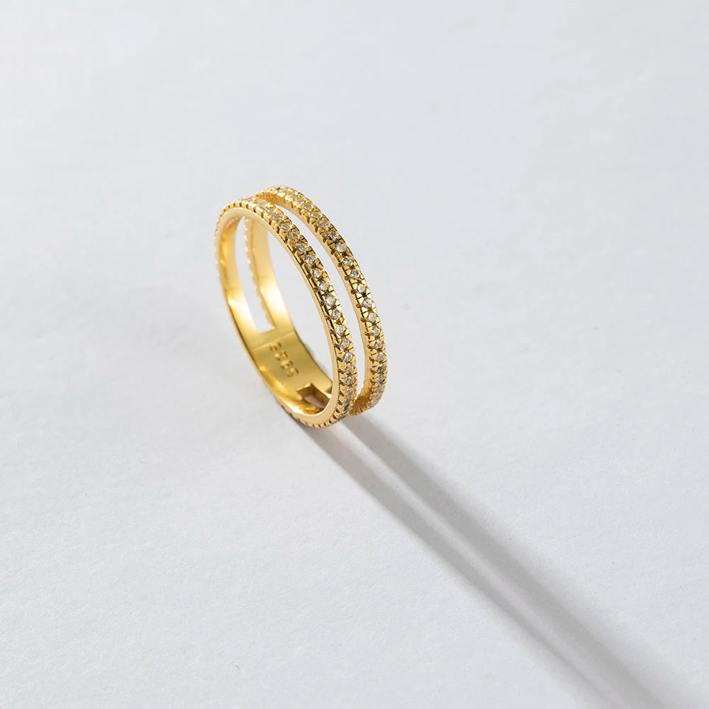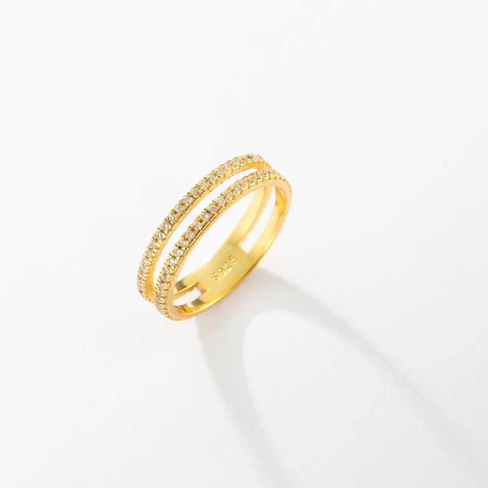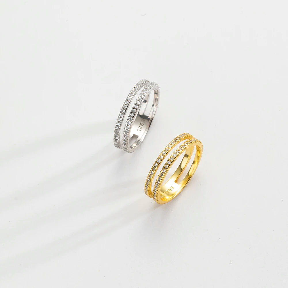 VEWANT 925 Sterling Silver Recyclable Two CZ Pave Double Line Ring Women Crystal Luxury Wedding Birthday Jewelry