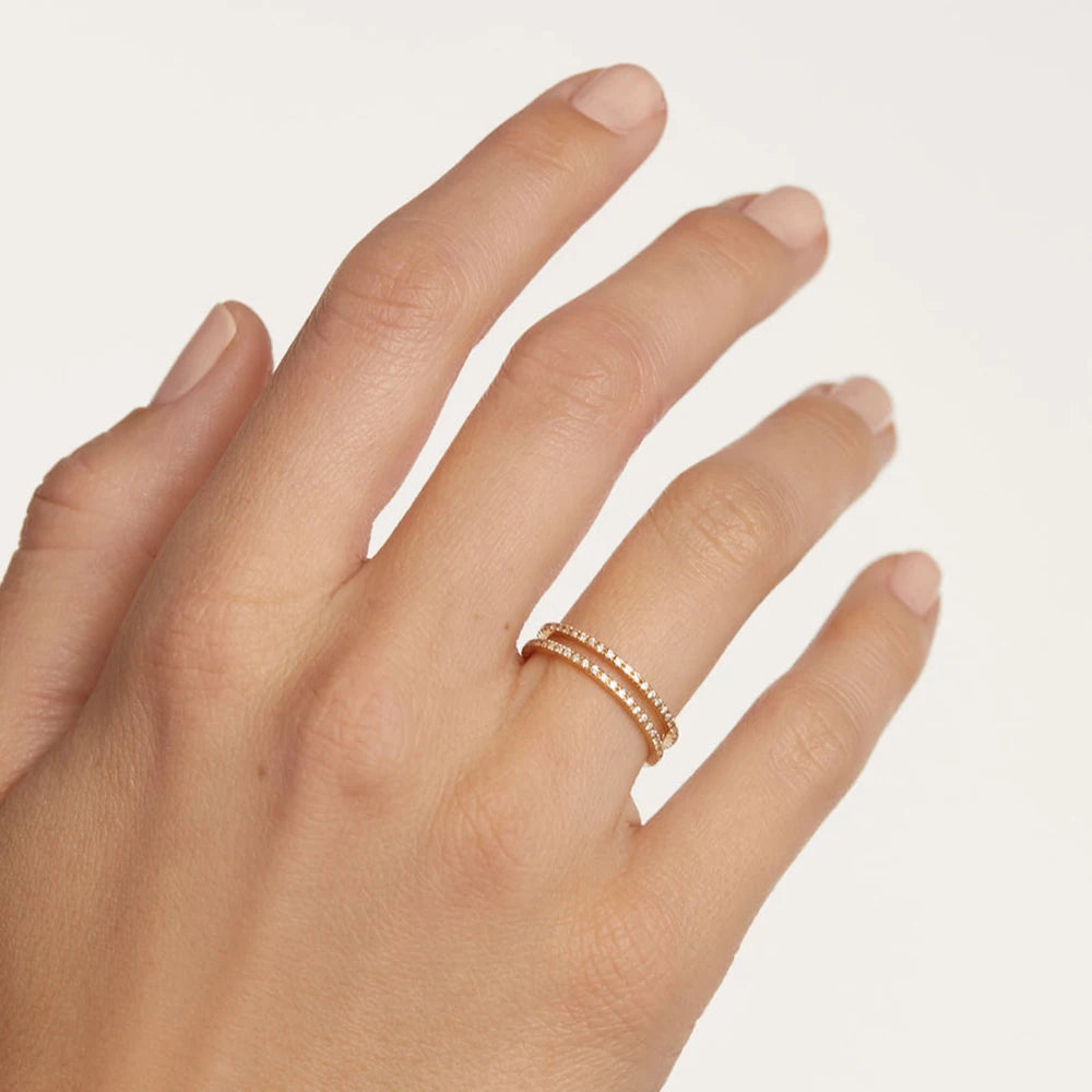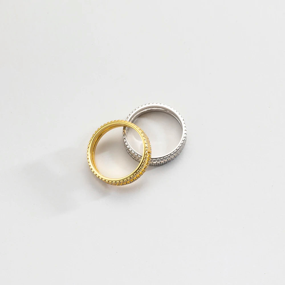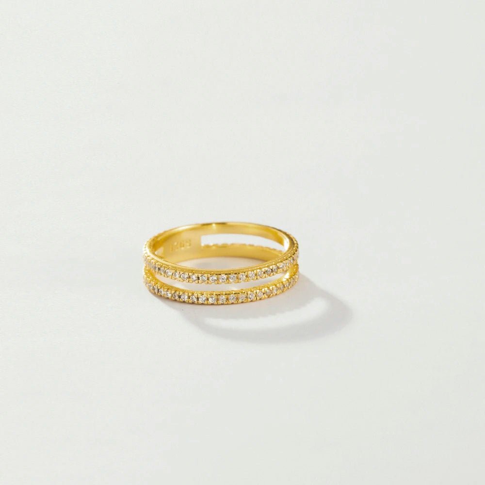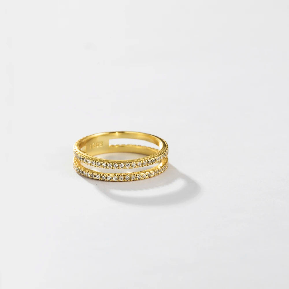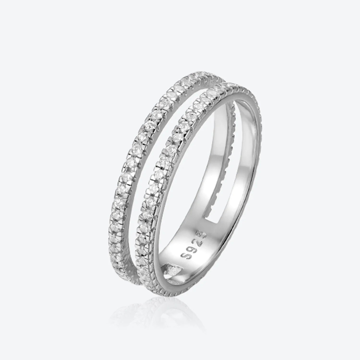 VEWANT 925 Sterling Silver Recyclable Two CZ Pave Double Line Ring Women Crystal Luxury Wedding Birthday Jewelry