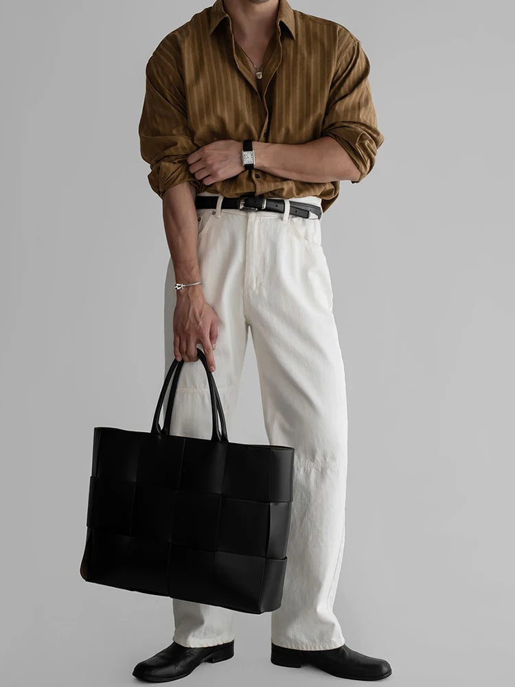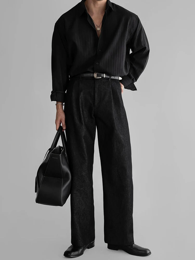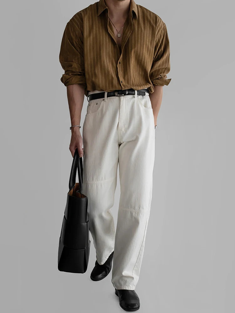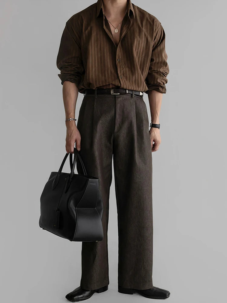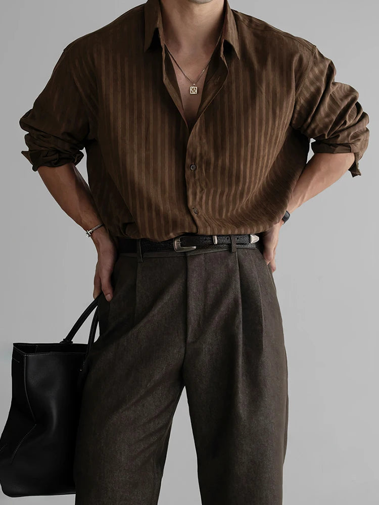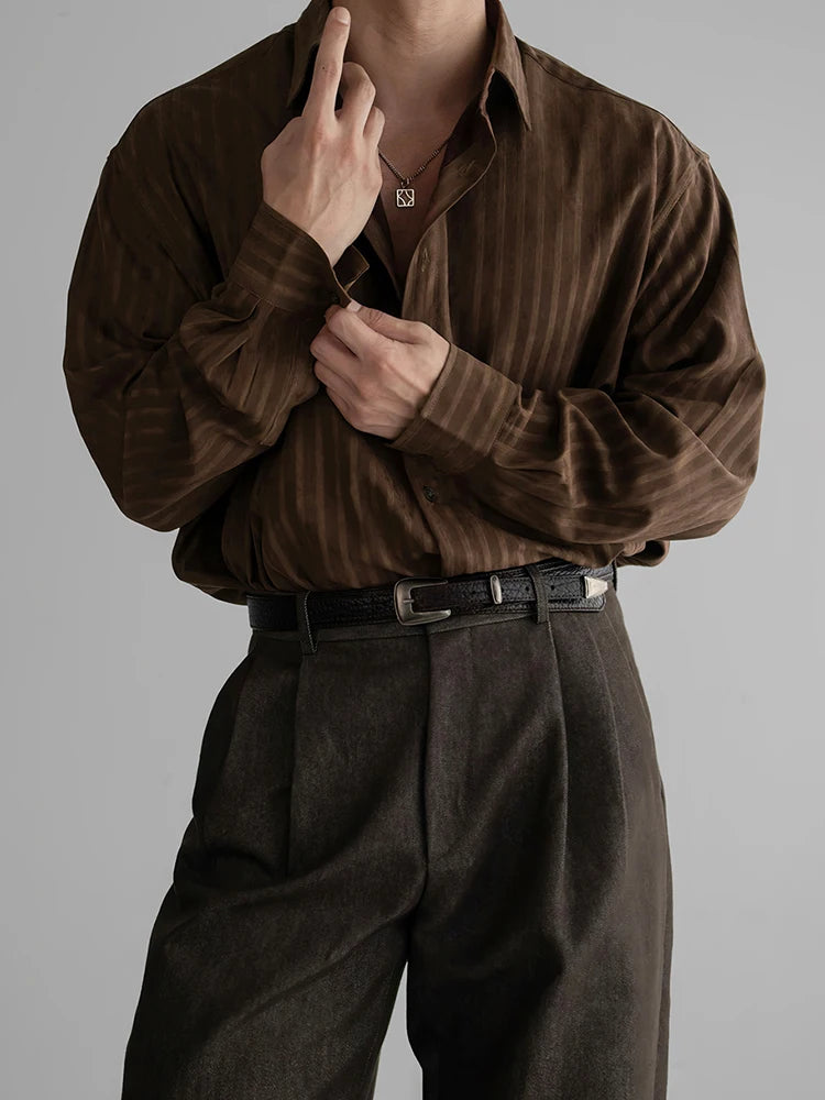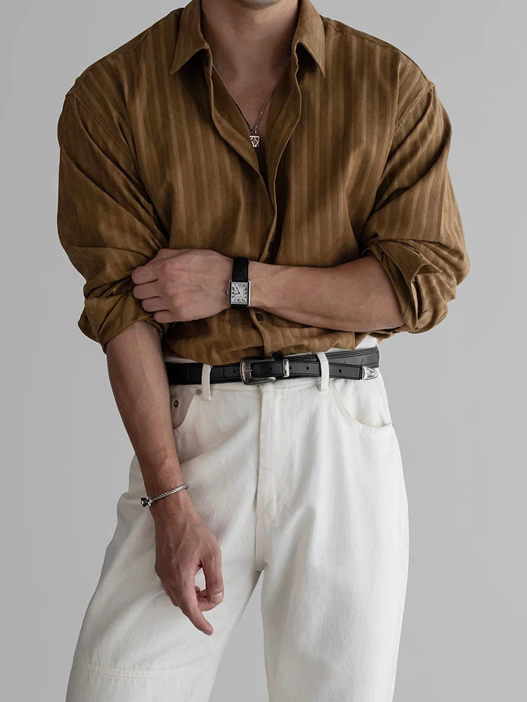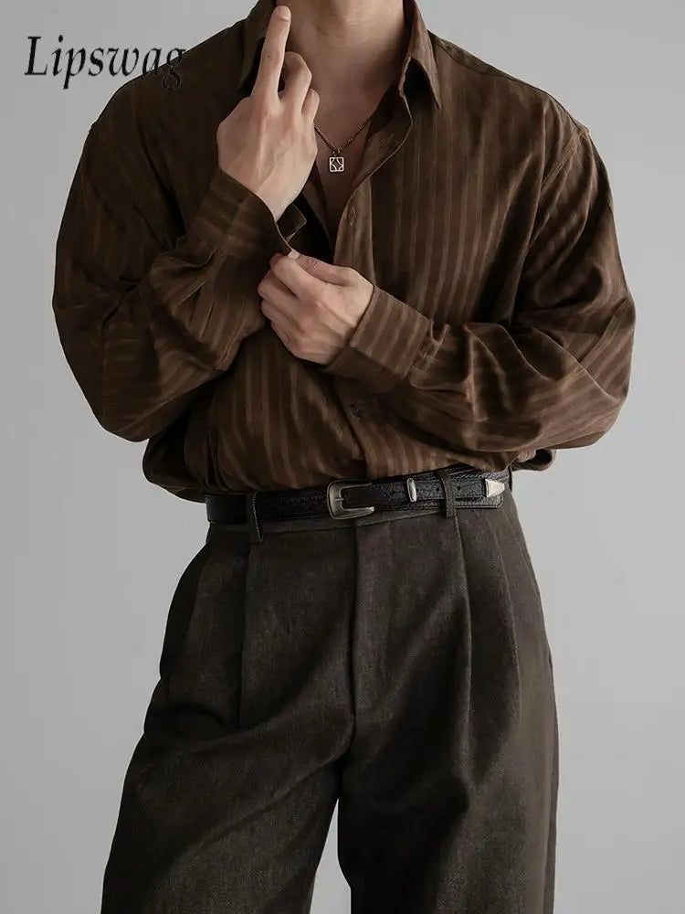 Vintage Striped Textured Shirts Men's Spring Autumn Outdoor Casual Button-up Shirt Long Sleeve Mens Fashionable Lapel Cardigans