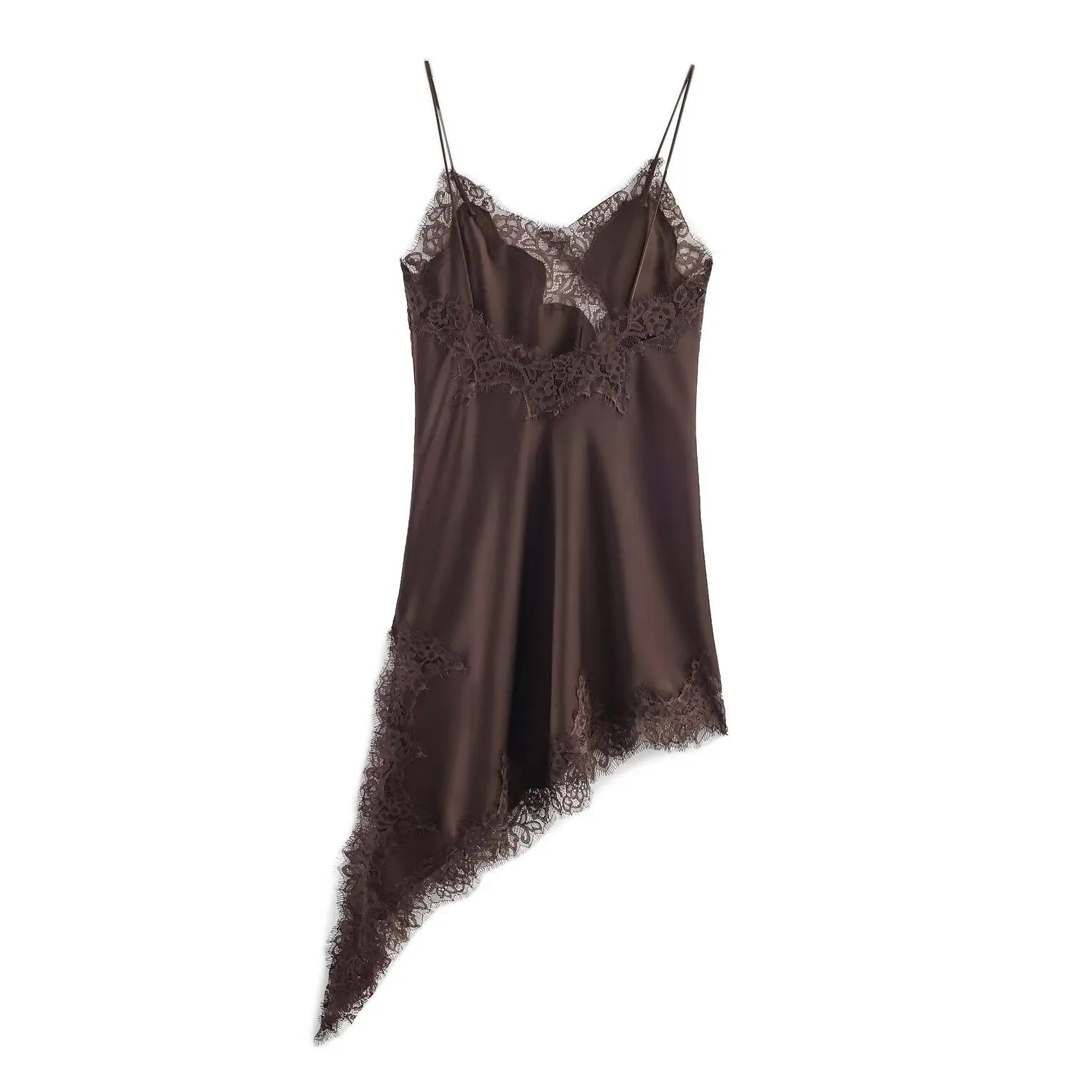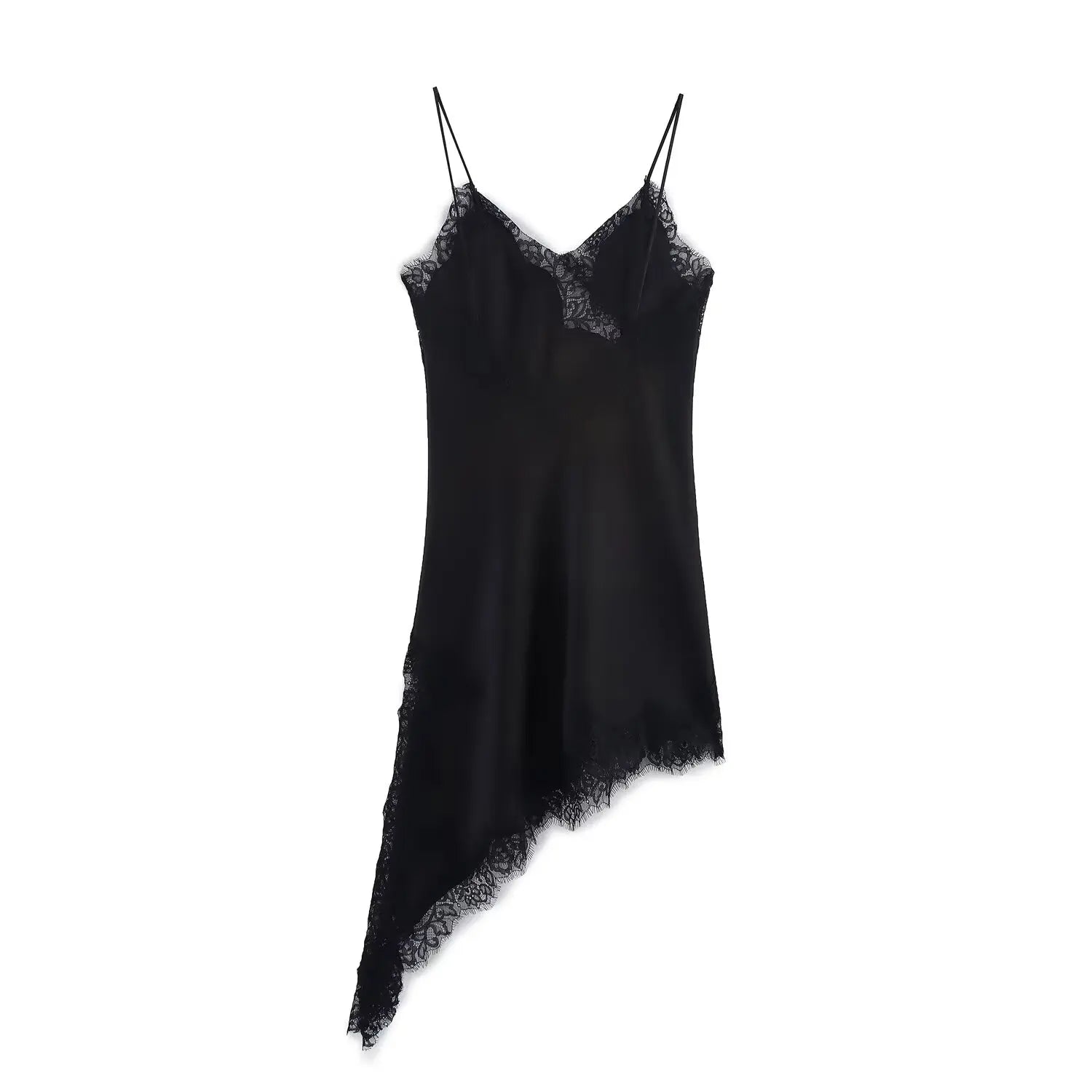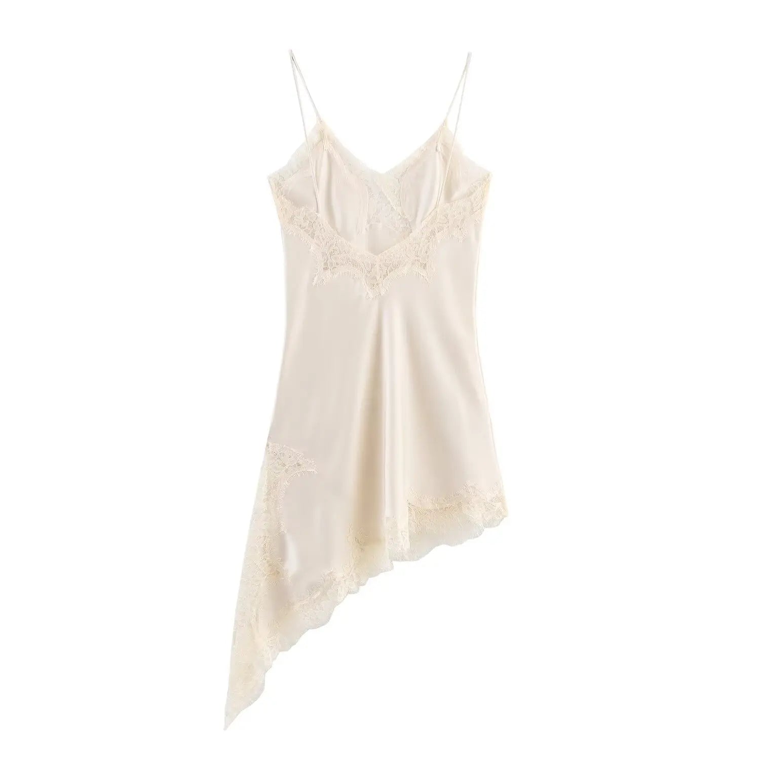 Women Fashion Sexy V-Neck Lace Elegant Halter Dress Asymmetric Hem Dress 2025 Summer New Fashion Holiday Party Beach Dresses