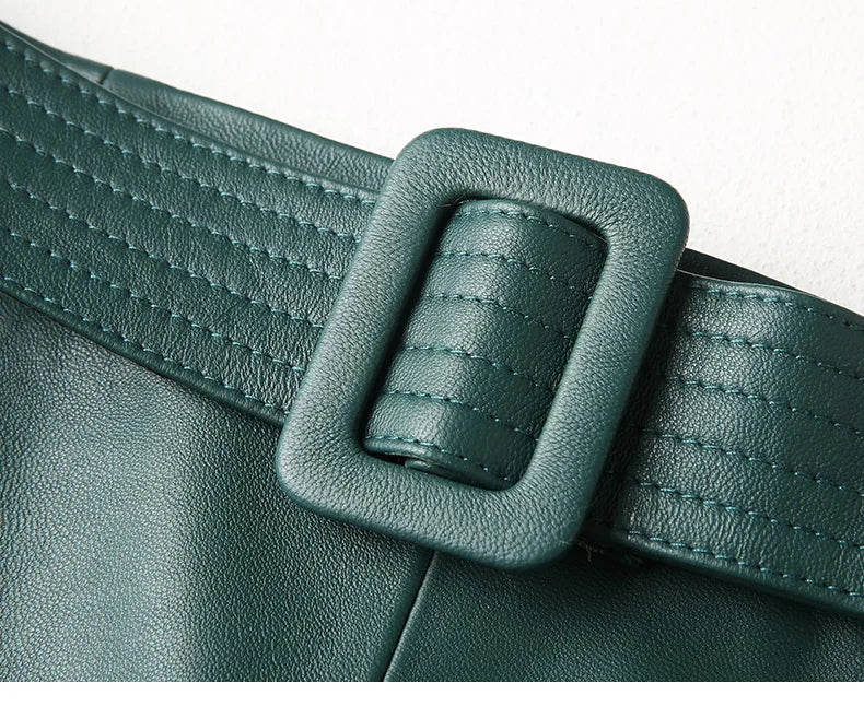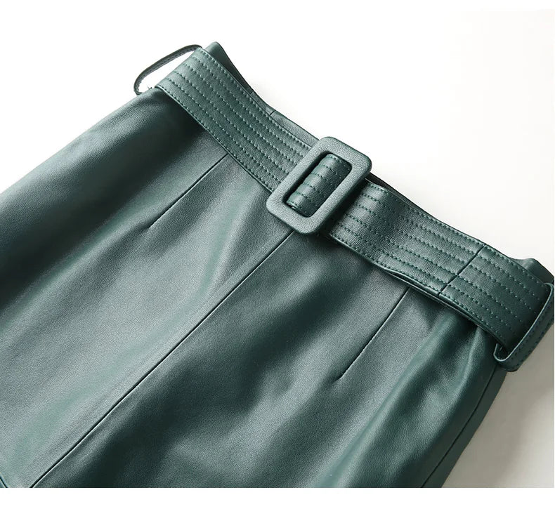 Women Lace-up Genuine Leather Skirt Female Winter Pure Sheep Skin Knee Length Saias With Belt Feminina Neat Stitches Wrap Jupe