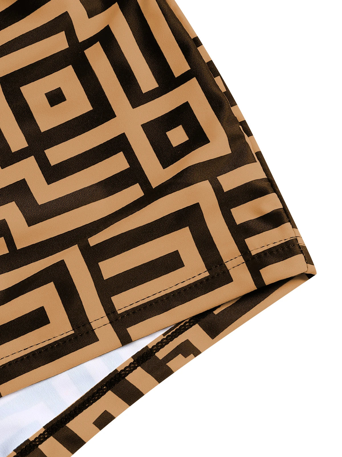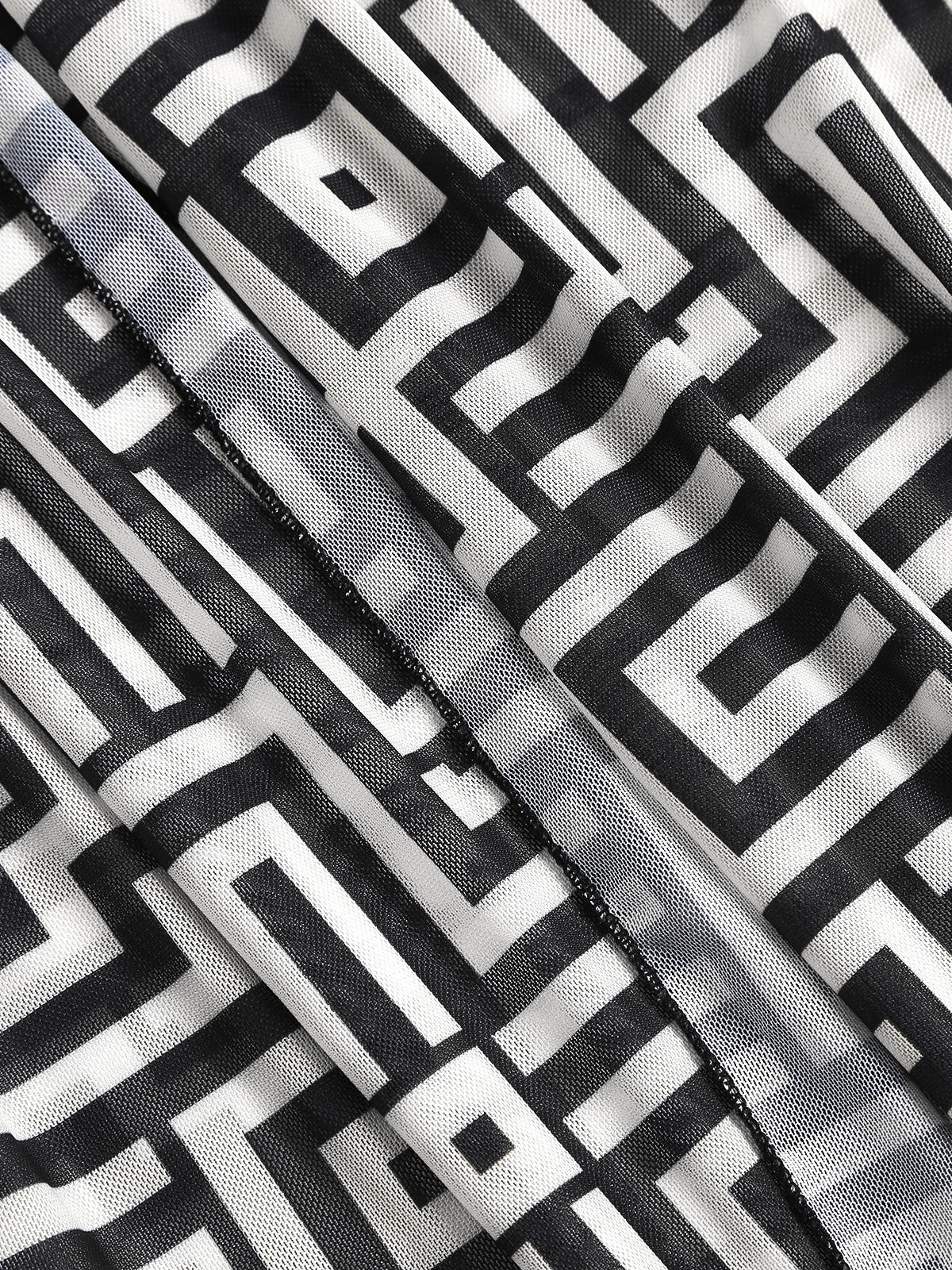 Women's Beach Summer Geometric Print Three-Piece Swimsuit Set with Long Sleeve Beach Cover-Up, Polyester Knit Fabric with Elasta