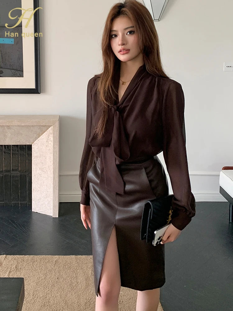 Womens Blouse Vintage Bow Elegant Loose Women Business Shirts Work Casual Tops Chiffon Blouse New Arrival Shirt