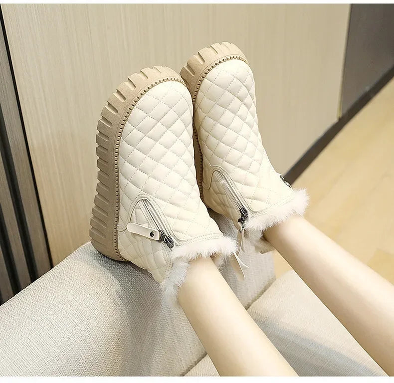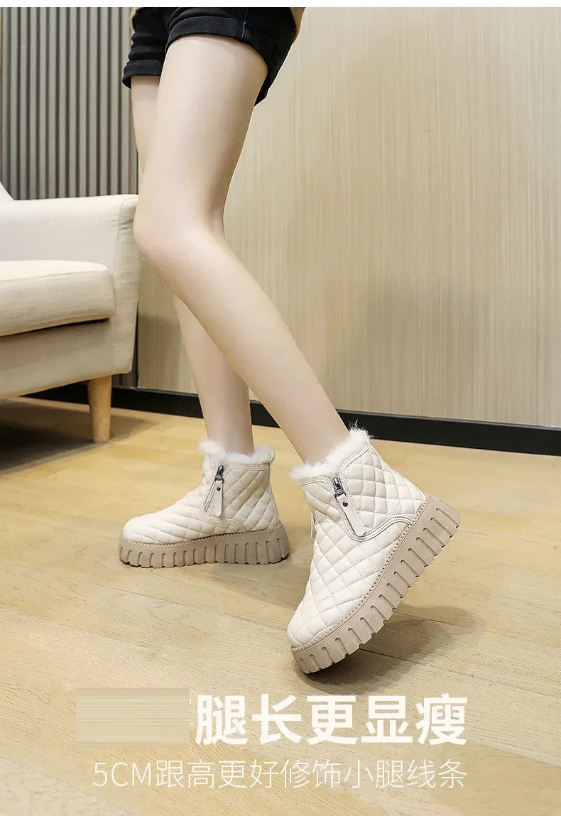 Women's Boots 2024 Winter Plush Cotton Boots Warm Platform Comfort Cold Proof Shoes Zipper Height Increase Anti Slip Snow Boots
