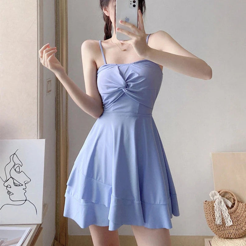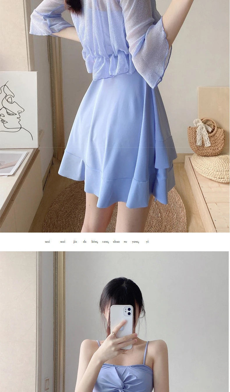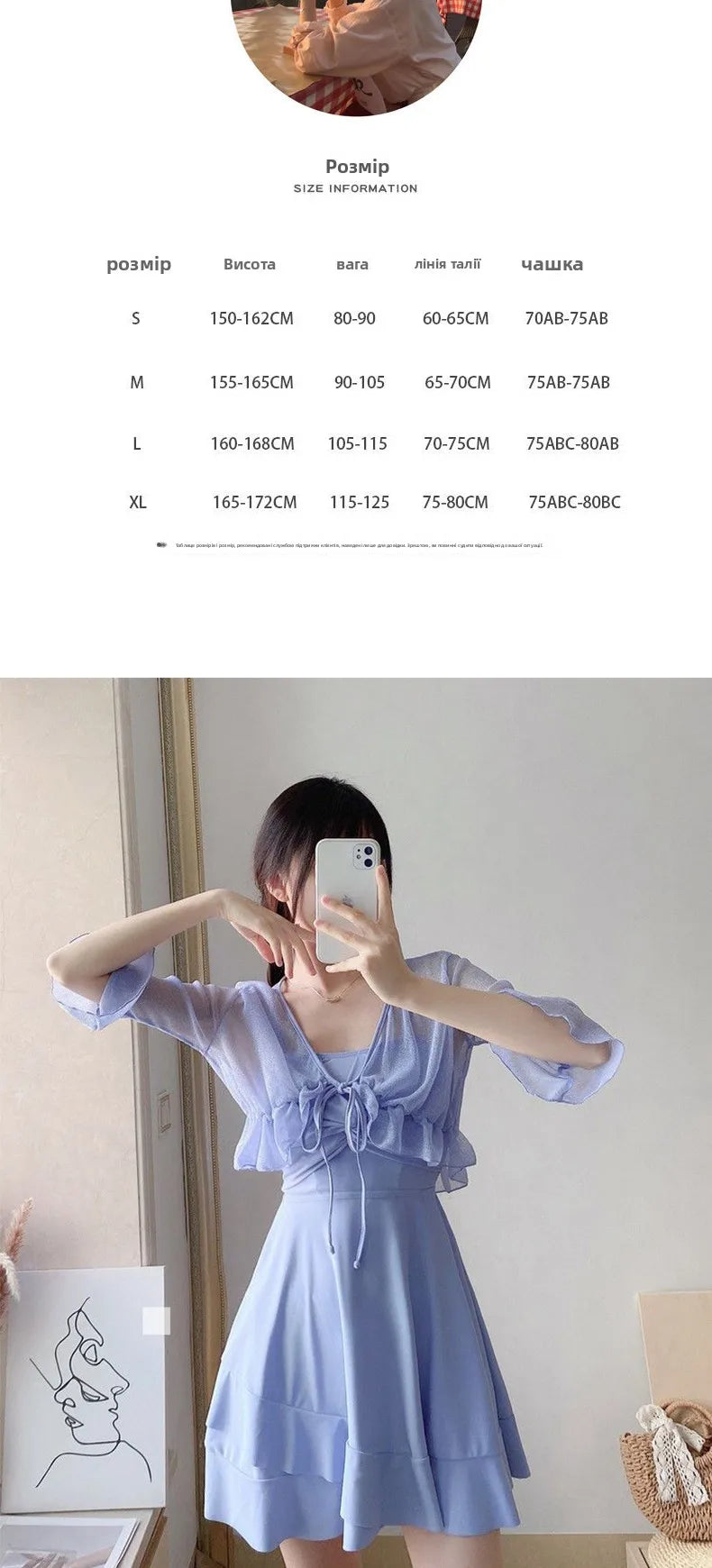 Women's High-End Bikini Tee-Piece Set Skirt Sle Faionable Thermal Spa Swimsuit Meat Covering Slimming Beachwear