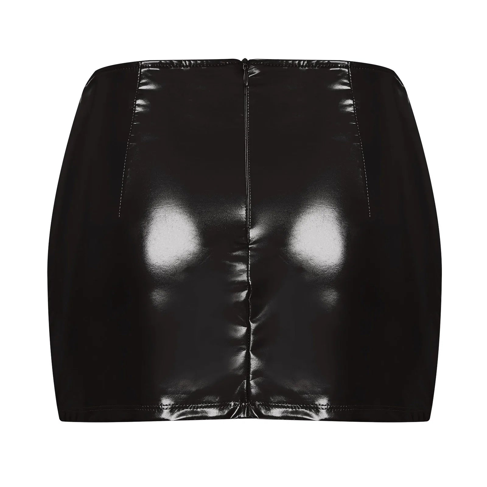 Bodycon Skirt for Club Dance Nightclub Music Festival: Women Glossy Front Split Mini Skirts Wet Look Rave Party Clubwear