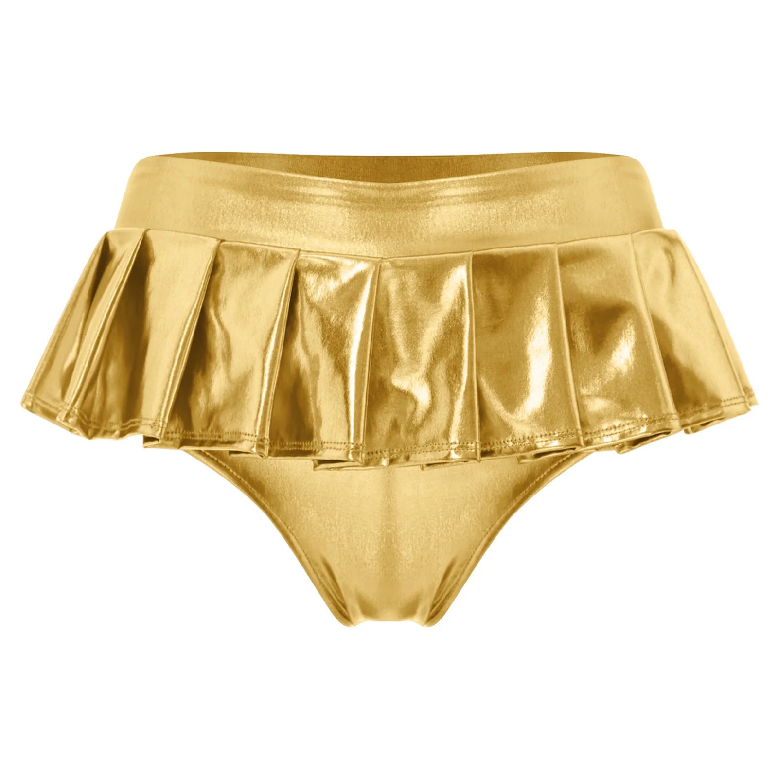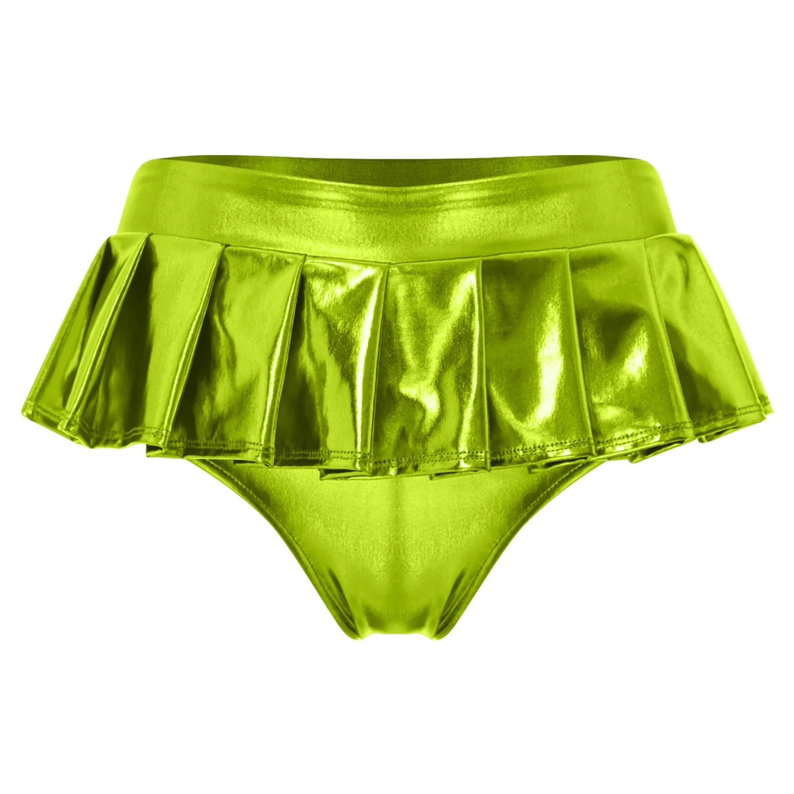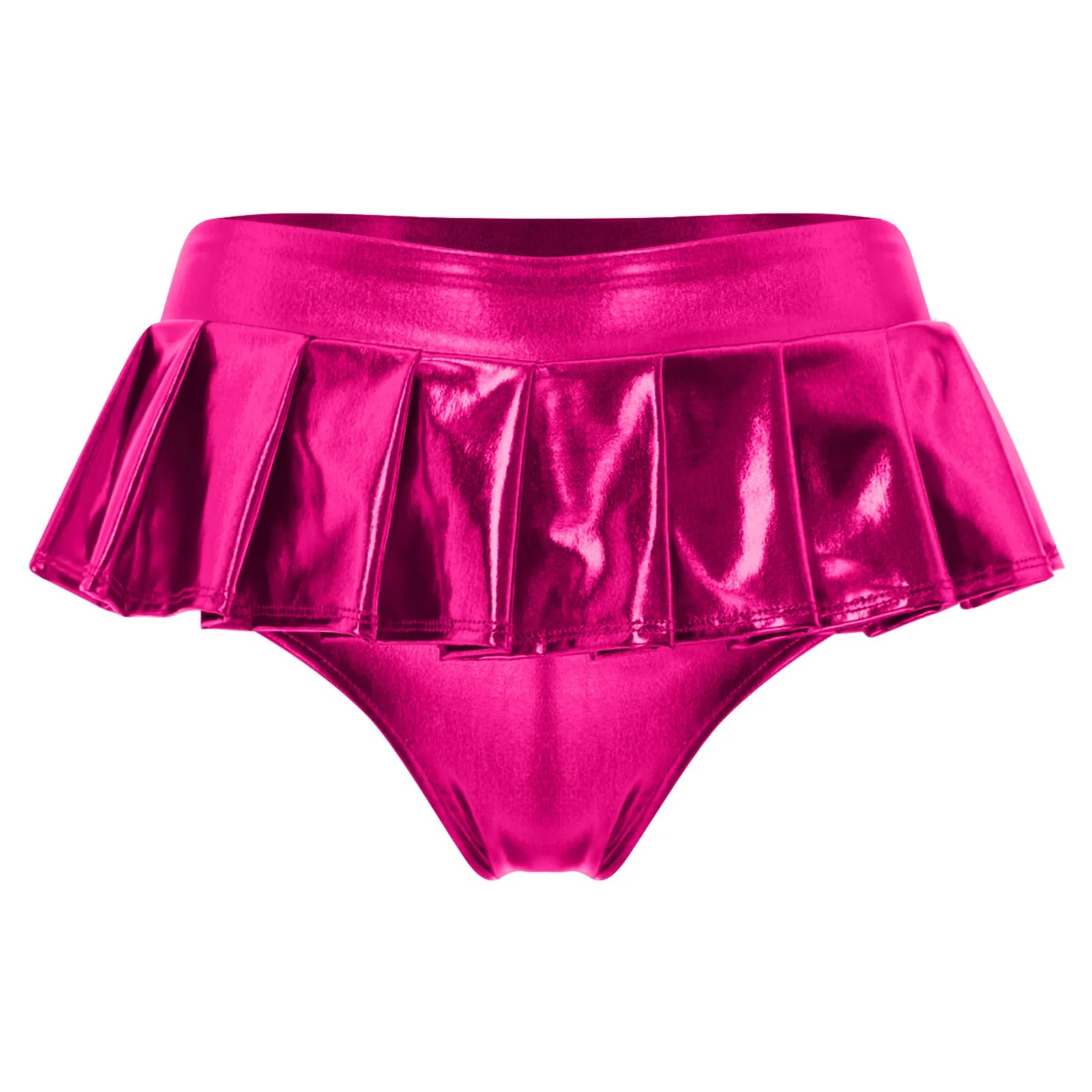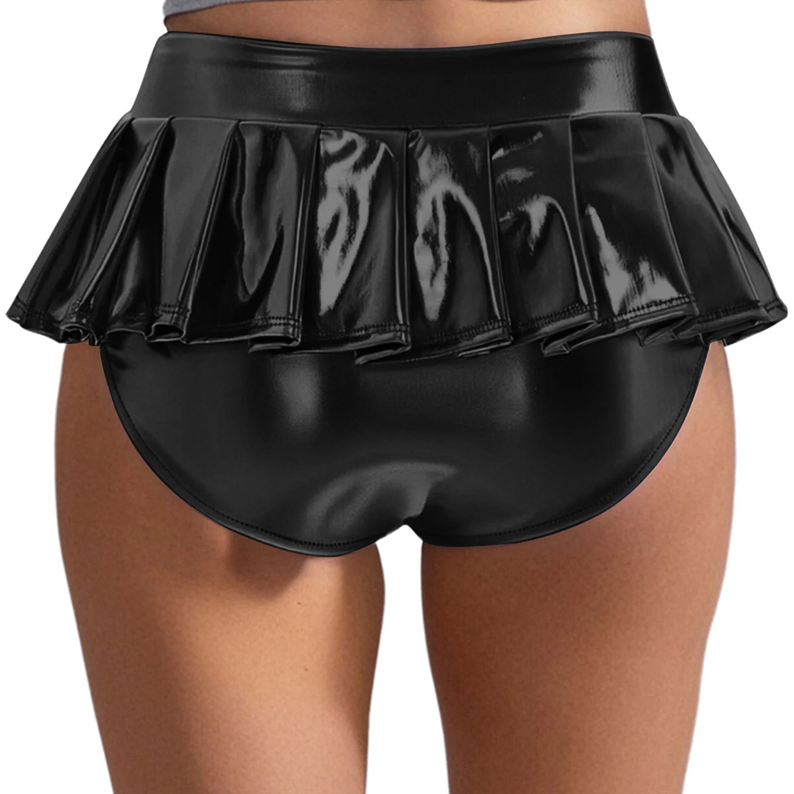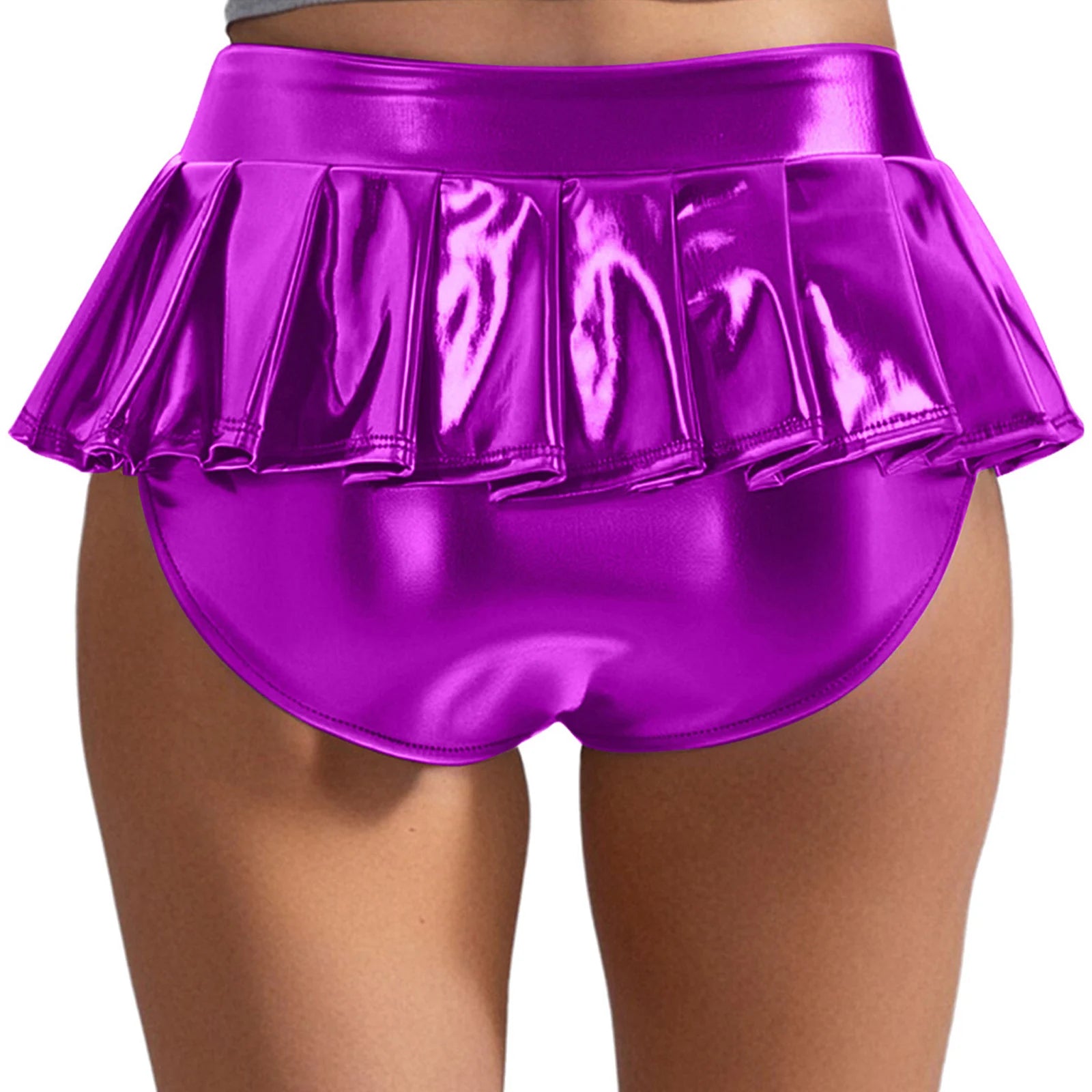 Womens Metallic Shiny Mini Skirt Elastic Waistband Pleated Skirted Underwear Culottes Micro Miniskirts Rave Party Nightclub Wear