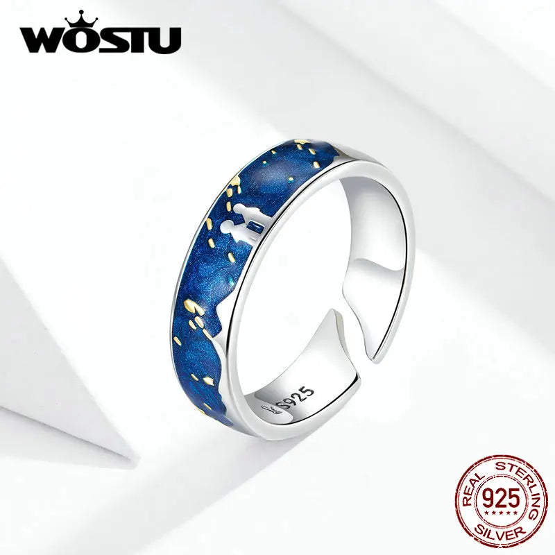 WOSTU 100% 925 Sterling Silver Meteoric Shower Blue Rings For Women Adjustable Finger Rings Wedding Lover Luxury Jewelry CQR609