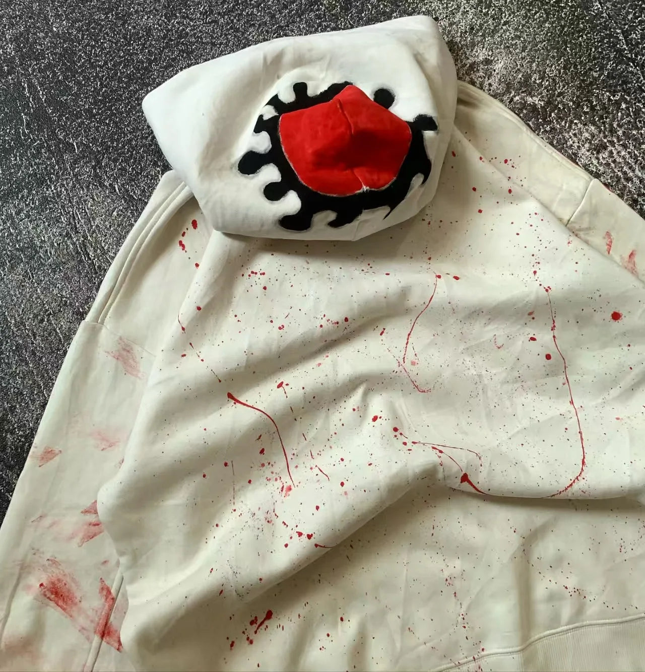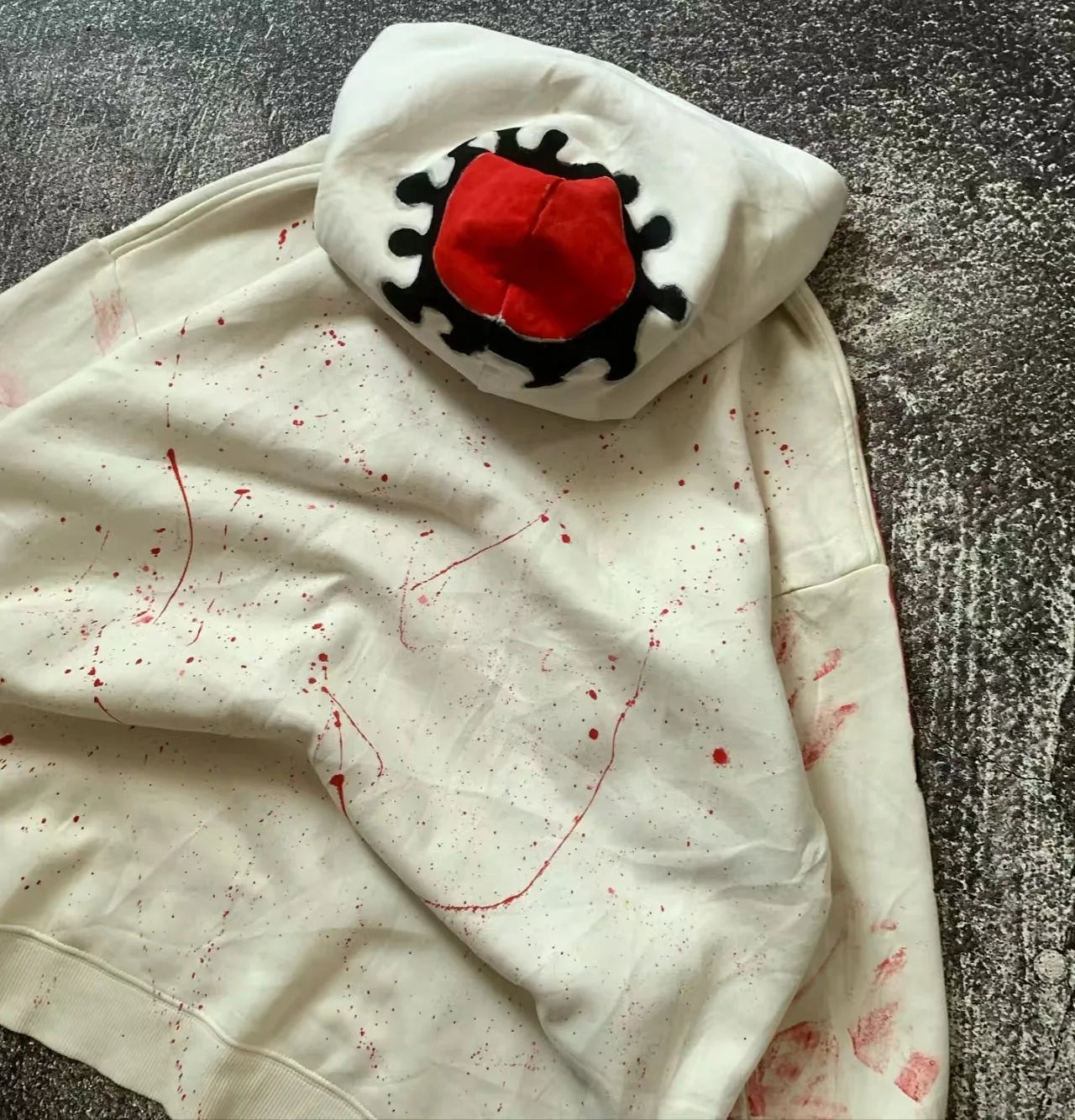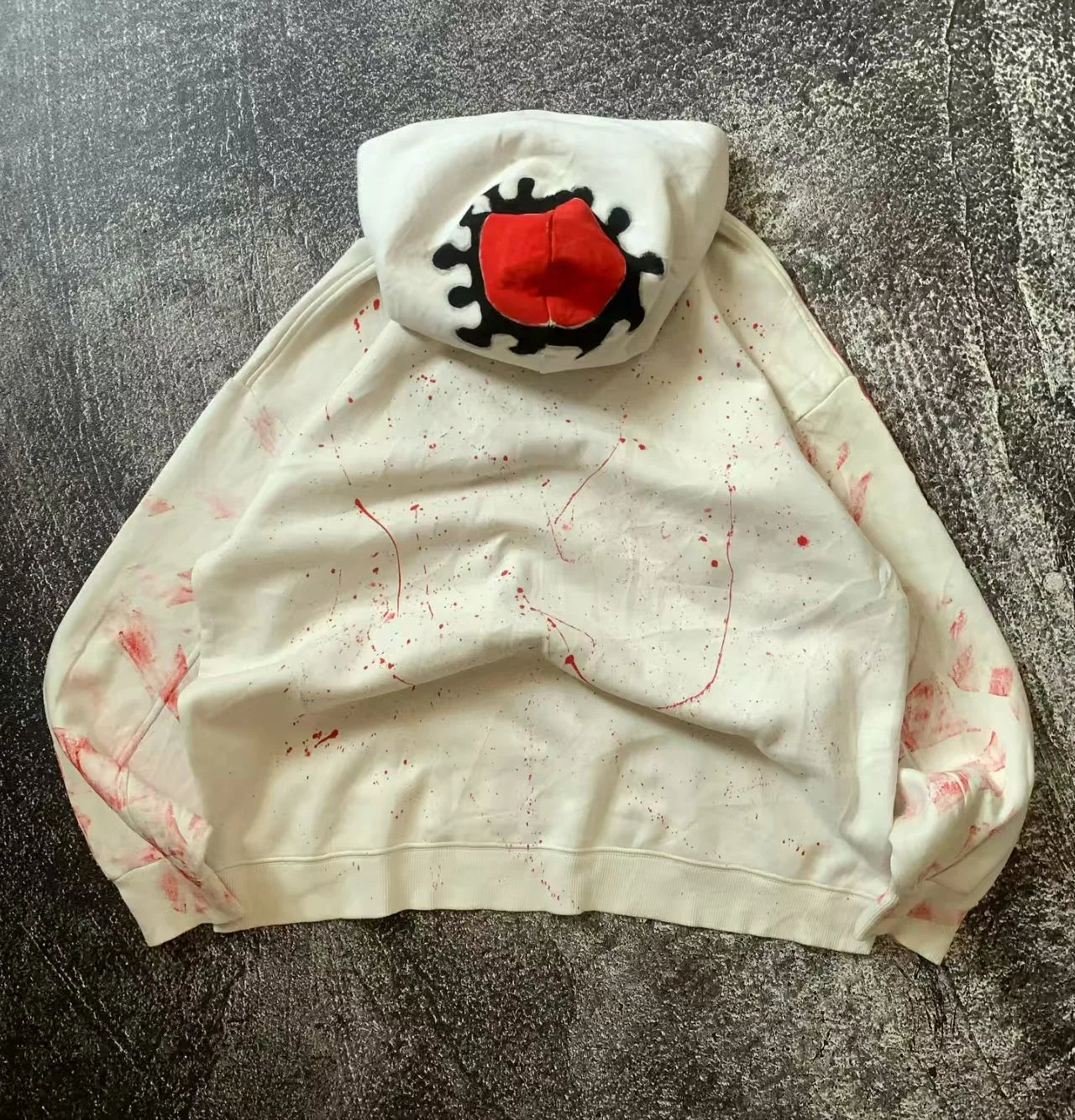 Y2K High Street fashion anime character patchwork design men hoodie punk hip-hop top loose pullover oversized casual sportswear